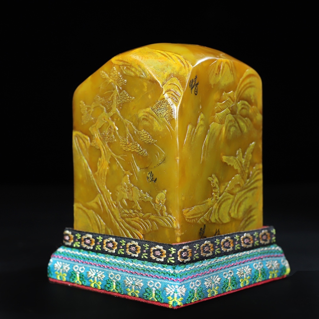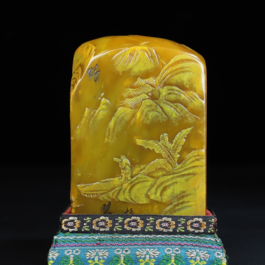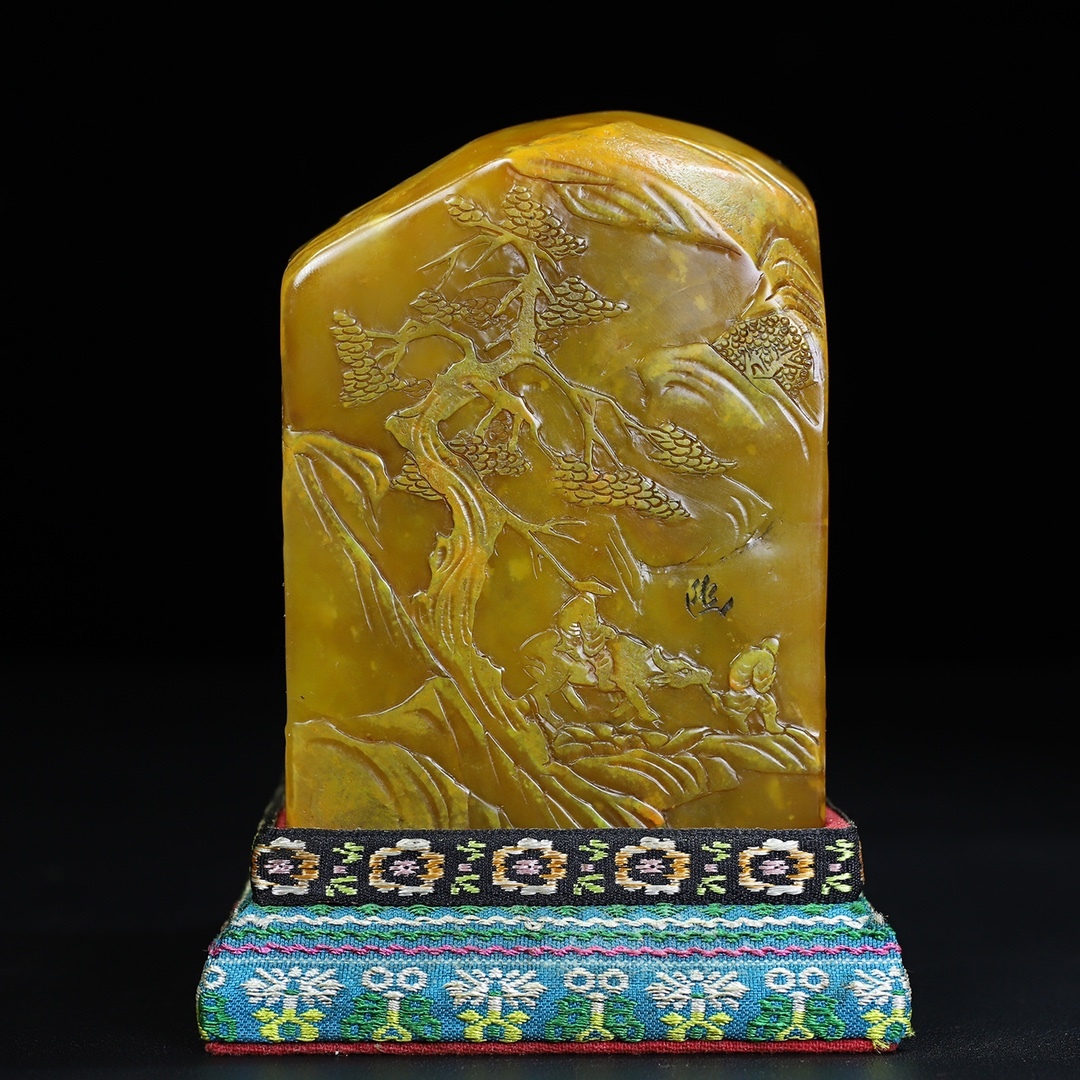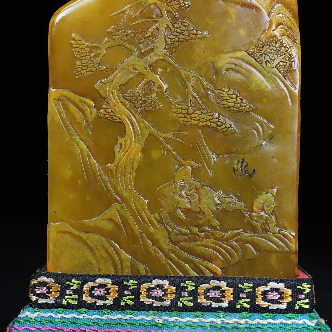 *珍品旧蔵* 【中国近現代篆刻家 林清卿】寿山石 微彫 走親訪友人物 薄意印鑑 天然石 篆刻 古印材 極細工 中国古玩 骨董品 古美味 H410