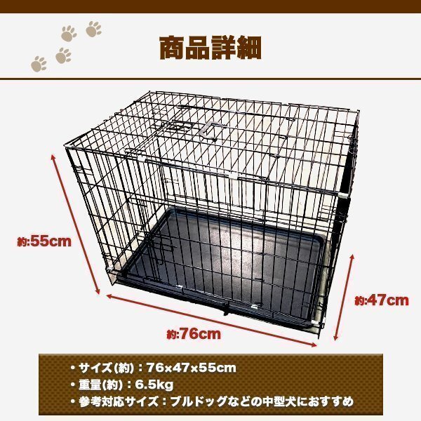 折畳み ペットケージ 中型犬用 76×47×55cm ネコ ねこ 猫小屋 犬 いぬ 犬小屋 フェンス 持ち運び キャットハウス Lサイズ