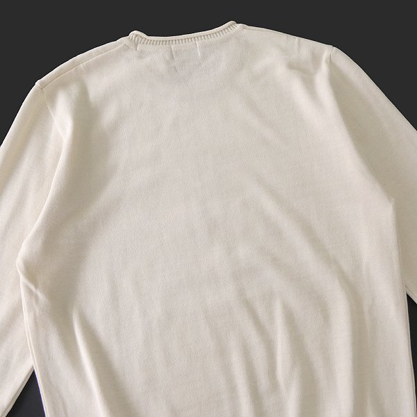 日本製 定価20,900円 新品 未使用 紙タグあり Mサイズ 胸囲88~96 身長165~175 ※写真は別サイズを使用している場合がございます※ ※商品に記載されたサイズ・寸法です※ 肩幅42cm 身幅51cm 袖丈62cm 着丈68cm ※伸縮性のある素材の為、多少の誤差が生じる場合がございます※ 毛55% 綿45% アイボリー |