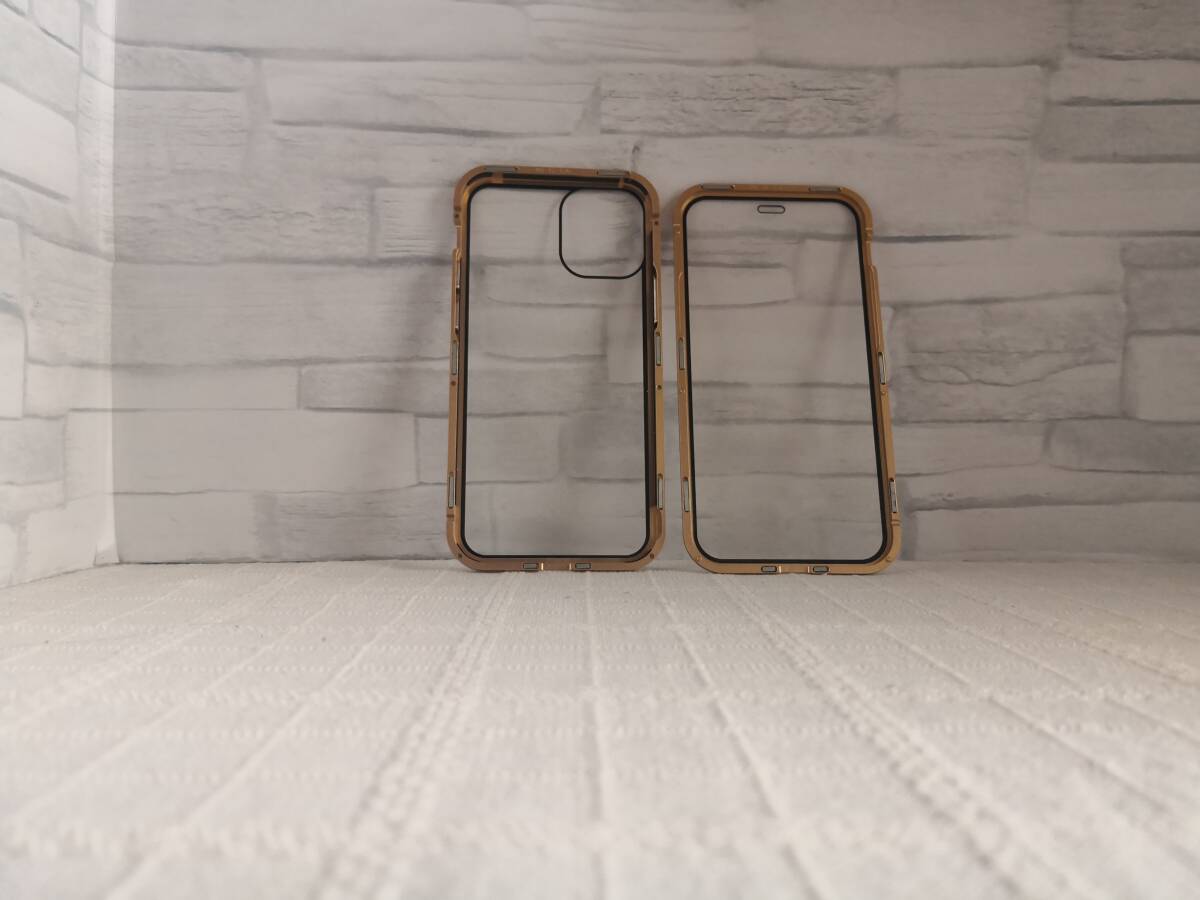 iPhone 12 mini ゴ-ルド 強化ガラス 全面保護 ケース (ワイヤレス充電OK!)