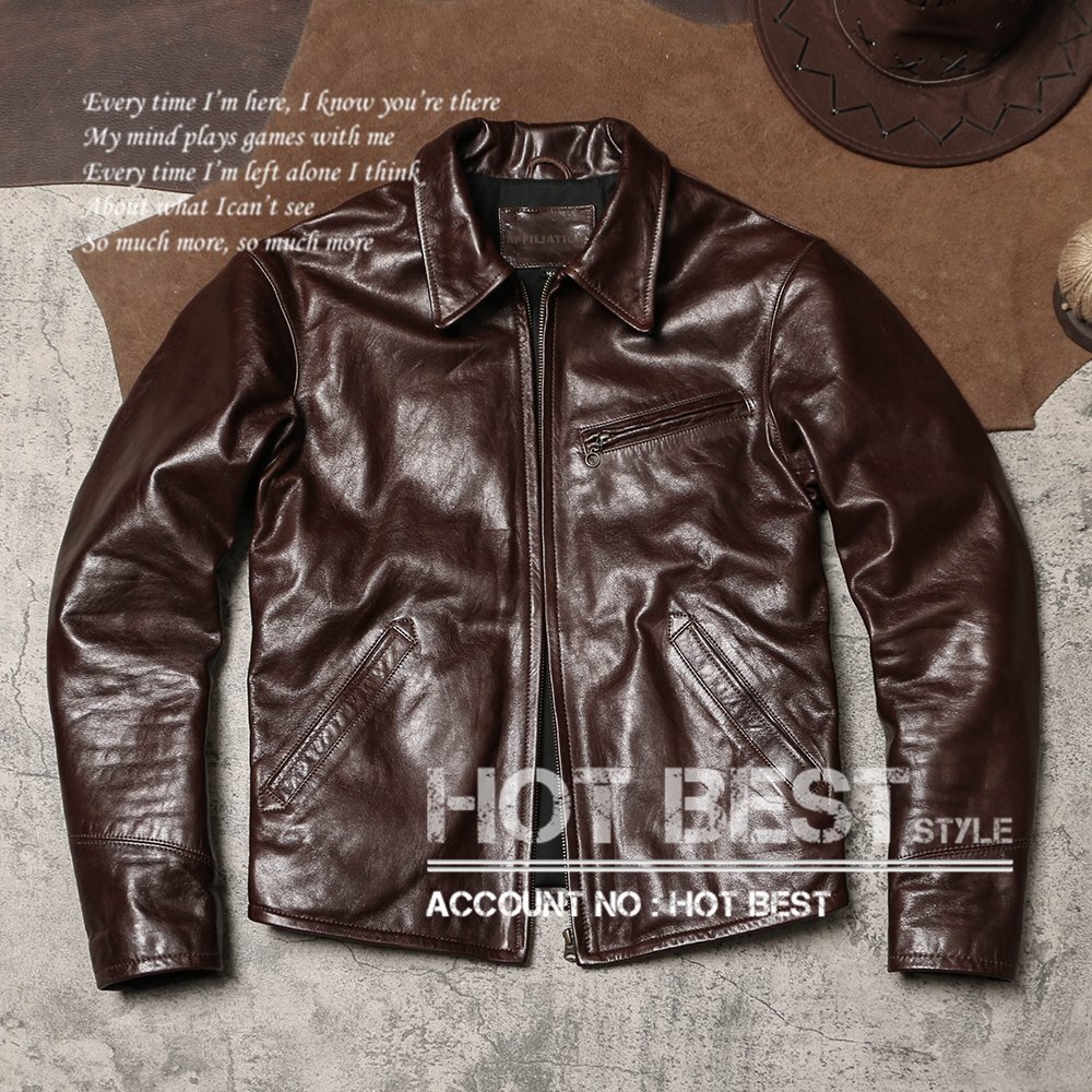 0.8mm ゴートスキン 30'sスタイル シングルライダース メンズ 革ジャン レザージャケット オイルワックスレザー ヤギ 山羊革 Y1525/XXL