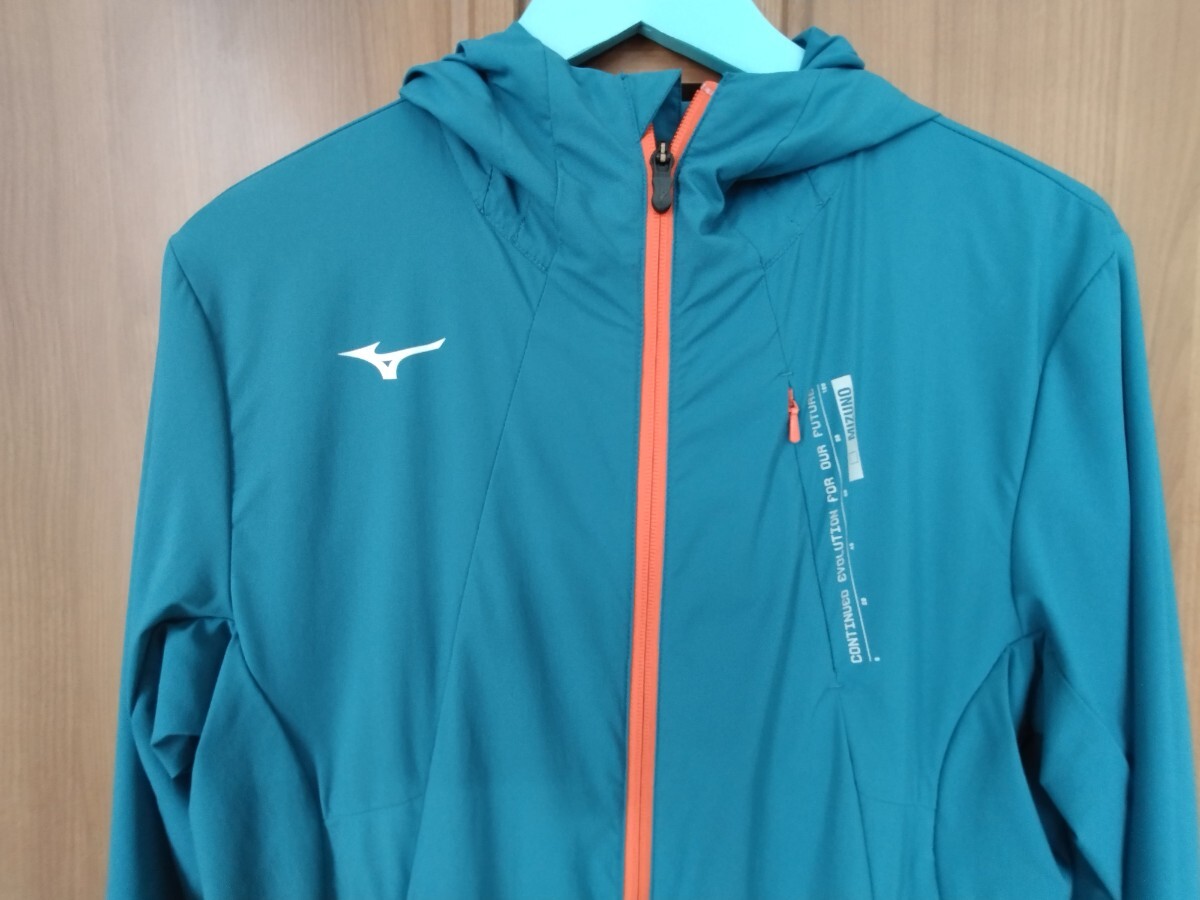 【美品】ミズノ ウインドブレーカージャケット ストレッチ ターコイズブルー メンズM