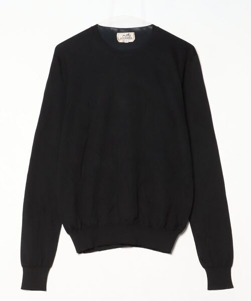 「HERMES」 シルク 長袖ニット S ブラック メンズ