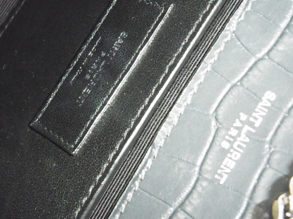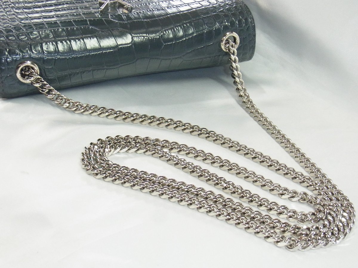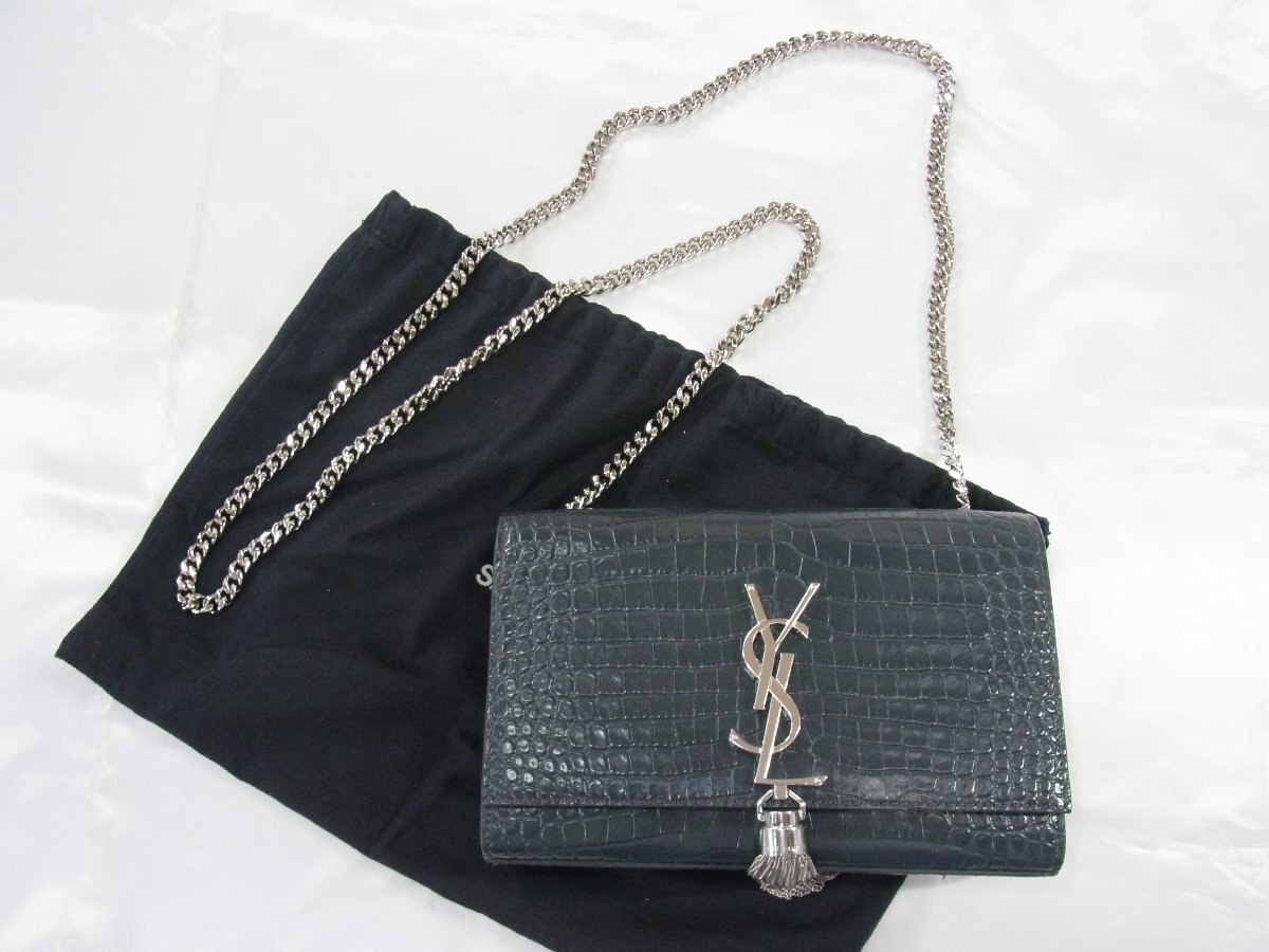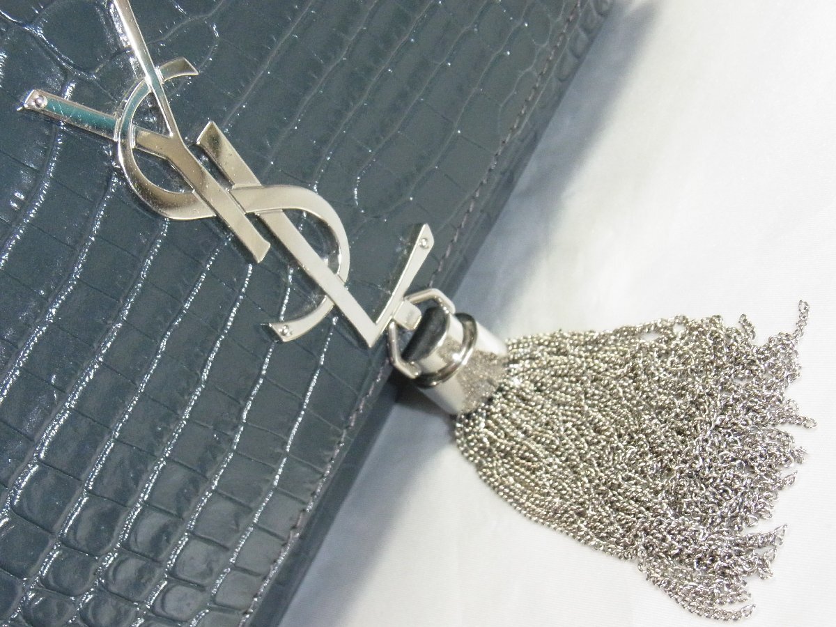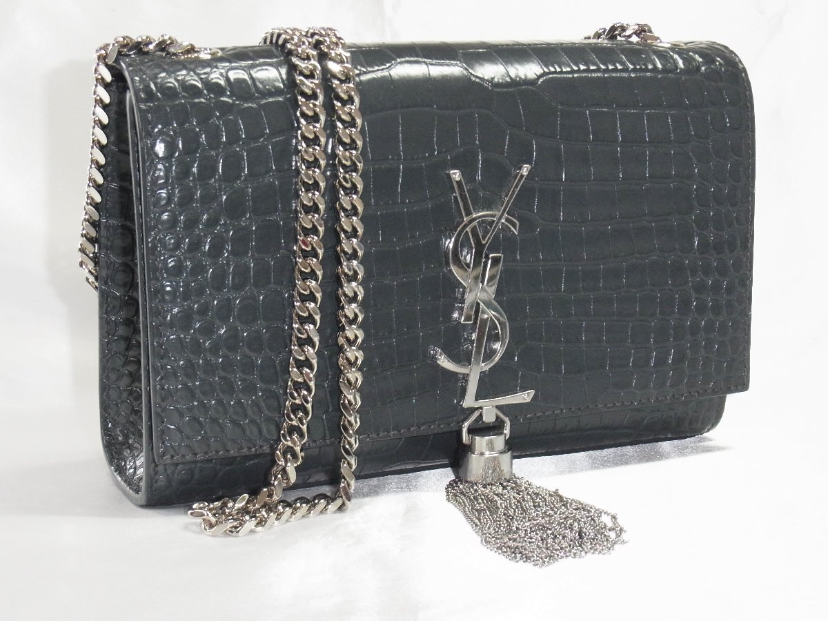 | イヴ・サンローラン YVES SAINTLAULENT ショルダーバッグ ケイト クロコ型押しデザイン レザー グレー シルバー金具 中古美品 | |