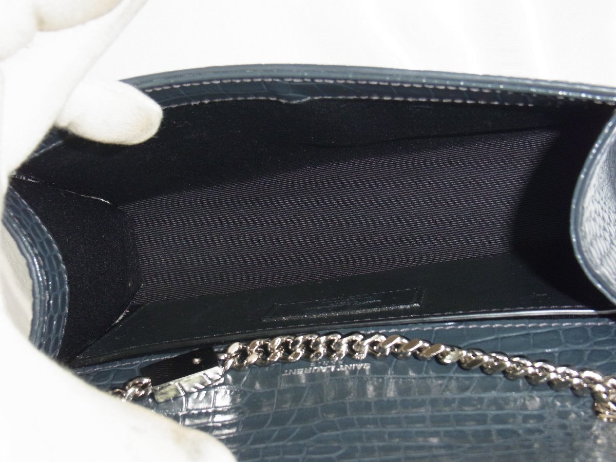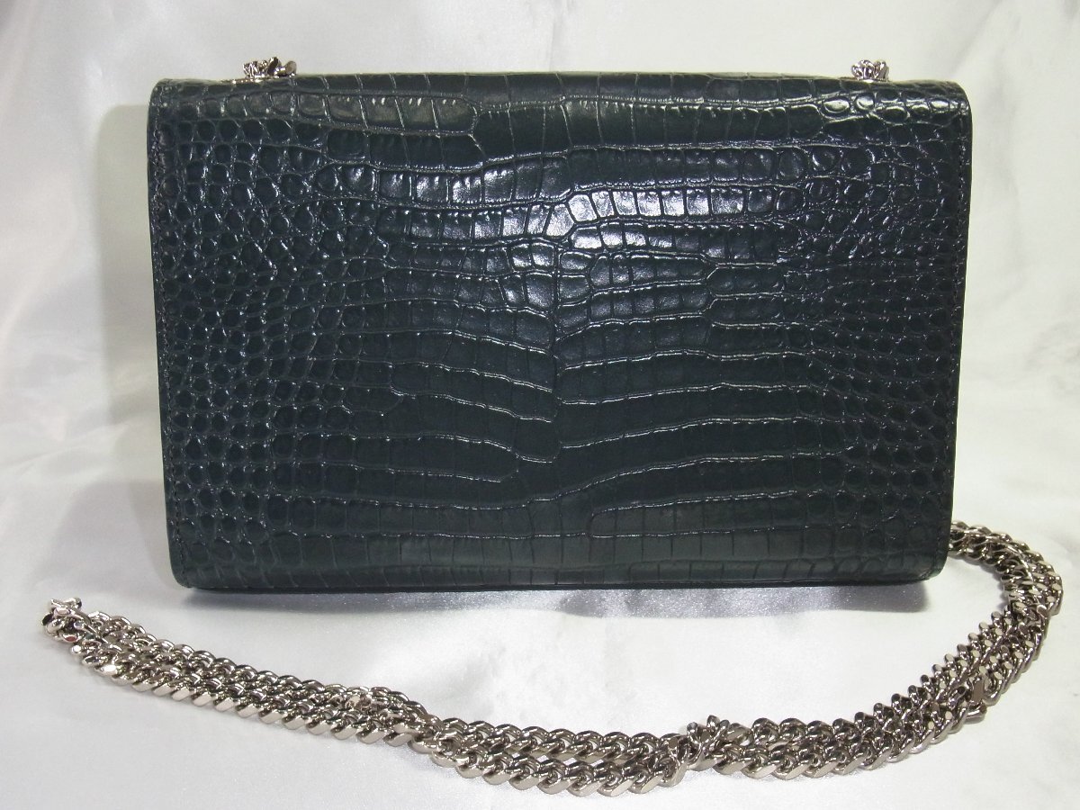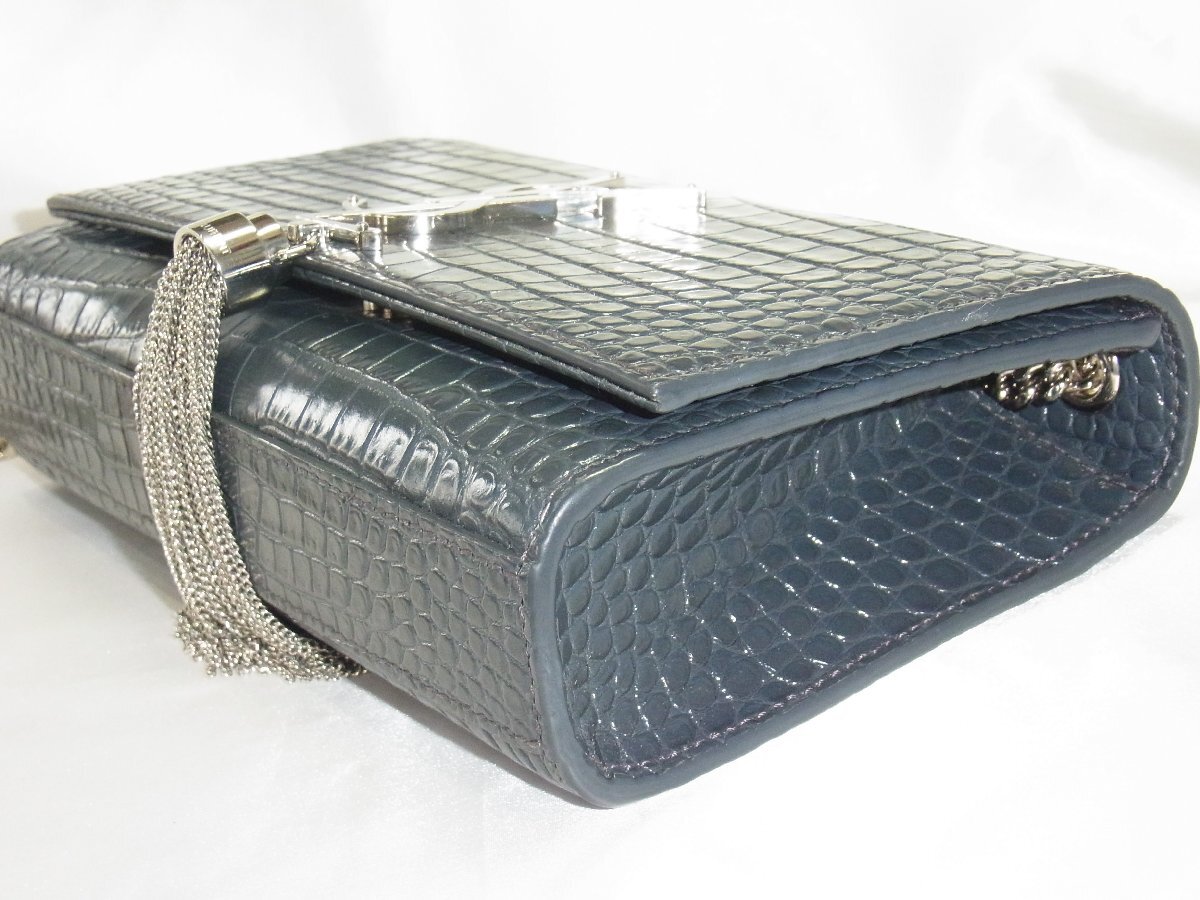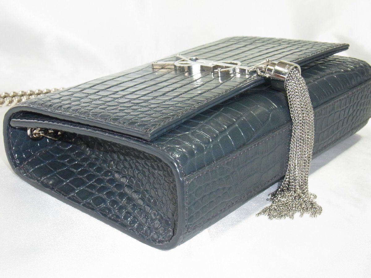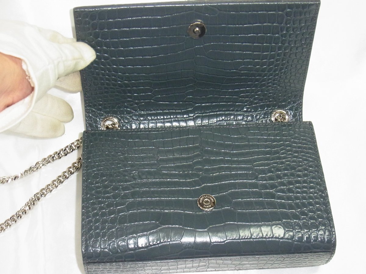 | イヴ・サンローラン YVES SAINTLAULENT ショルダーバッグ ケイト クロコ型押しデザイン レザー グレー シルバー金具 中古美品 | |
