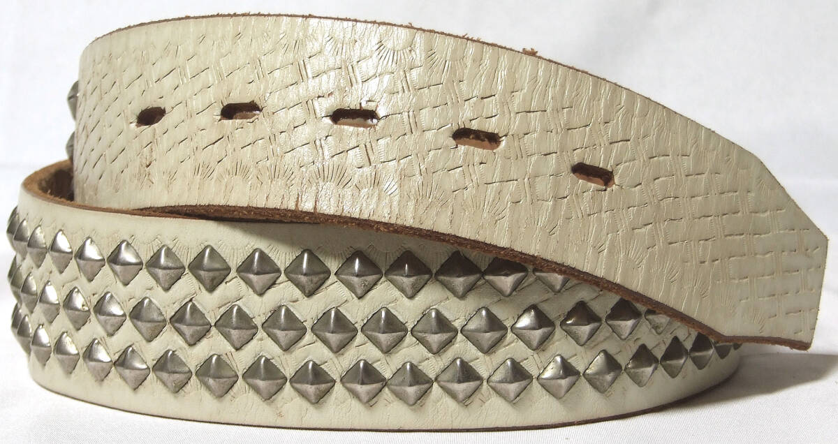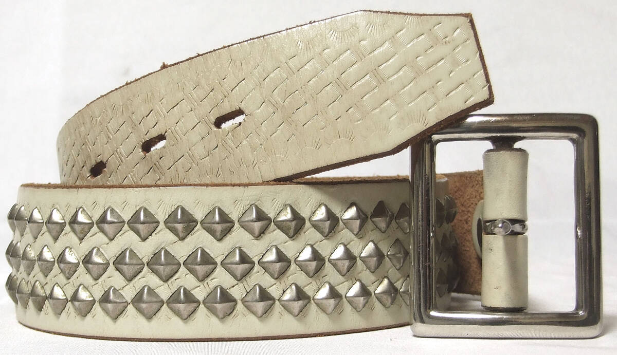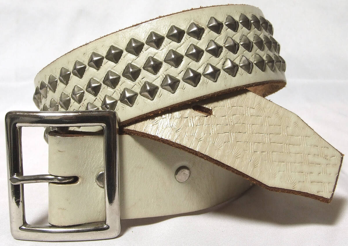 ■HTC ピラミッド・スタッズベルト【32】希少WHTレザーモデル!新同極美品