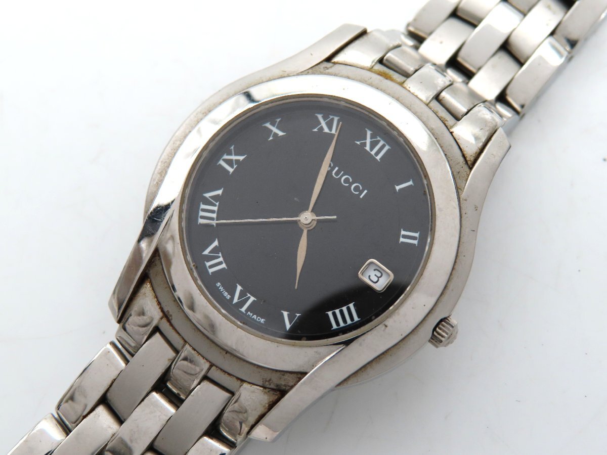 1円 グッチ 5500M SS ブラック文字盤 ボーイズ 稼働 QZ 26576 GRS
