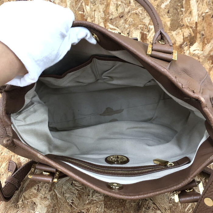 ・使用感のある中古Bランクになります。 *画像をよくご確認下さい。 【商品詳細】 サイズ 約 W28 ×H 29×D 10(cm) ハンドル:約40 (cm) ストラップの長さ:約94cm カラー:ブラウン系 素材:レザー ※多少の誤差はご了承下さい。 |