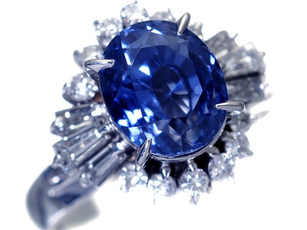 スリランカ産!超希少な超大粒サイズ4.27ct!バイオレティッシュブルーサファイアカラーの天然非加熱サファイア&上質ダイヤモンド総計0.65ctを宝飾した、超高級Pt900リングを1円から特別大放出!!