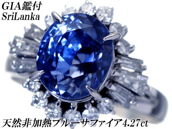 1円~【ジュエリー極】GIA鑑 超特大 天然非加熱バイオレットブルーサファイア4.27ct&ダイヤモンド 超高級Pt900リングh7905ikr【送料無料】