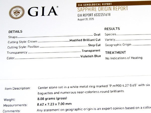 GIA発行の宝石鑑別書付属!(産地記載有り)