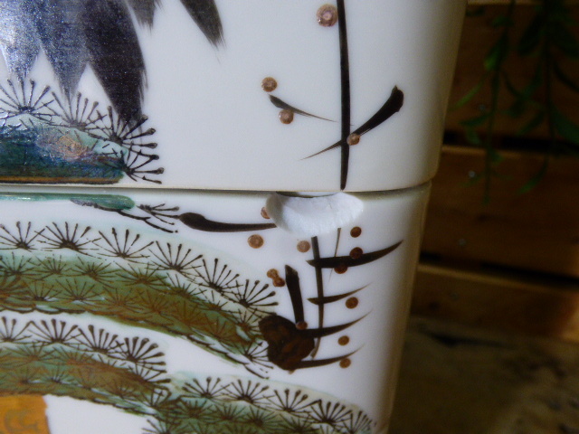 む692.陶磁器製 重箱 4段 鶴 松 金彩 赤峰謹製 コレクション