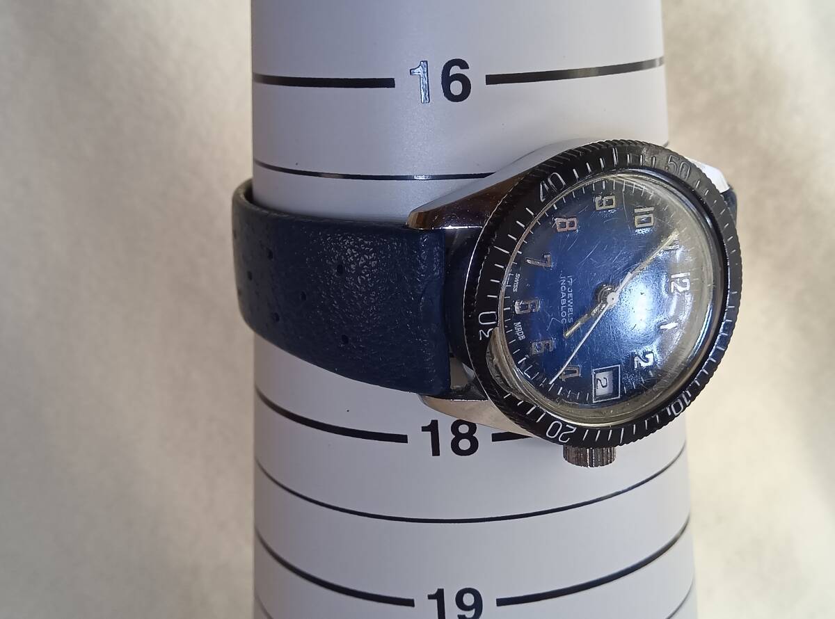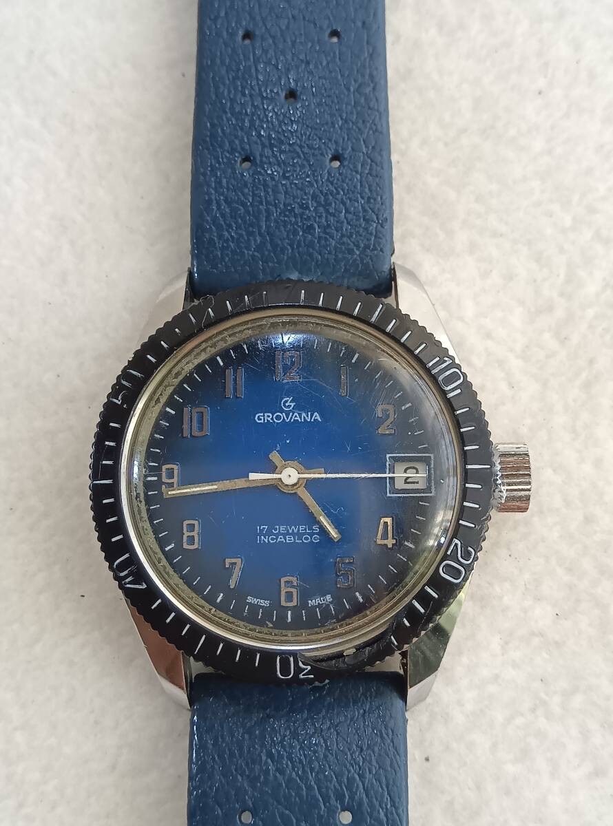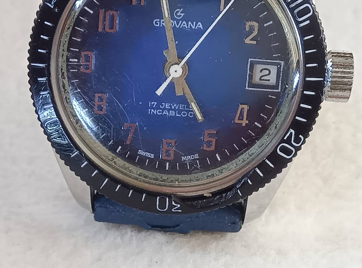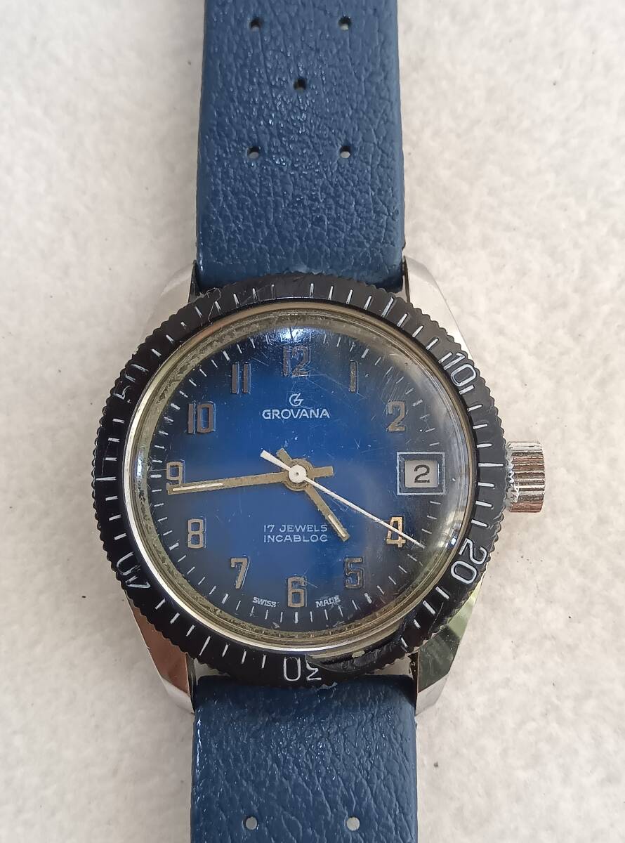 GROVANA ダイバータイプ 手巻 17石 メンズ ブルー文字盤 稼働品