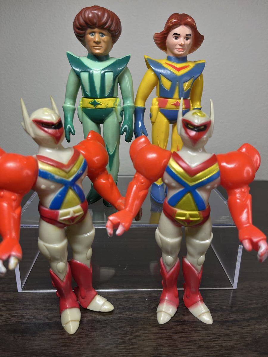 テッカマンは2体あります。本体に汚れやスレキズ、塗装剥がれや色飛びがあります。