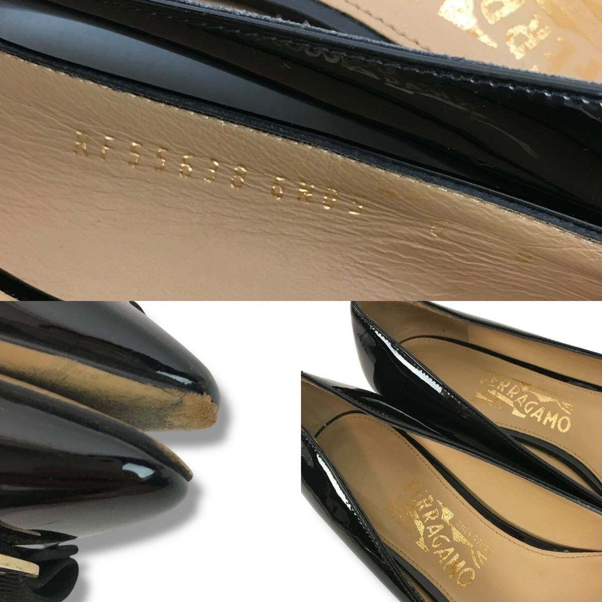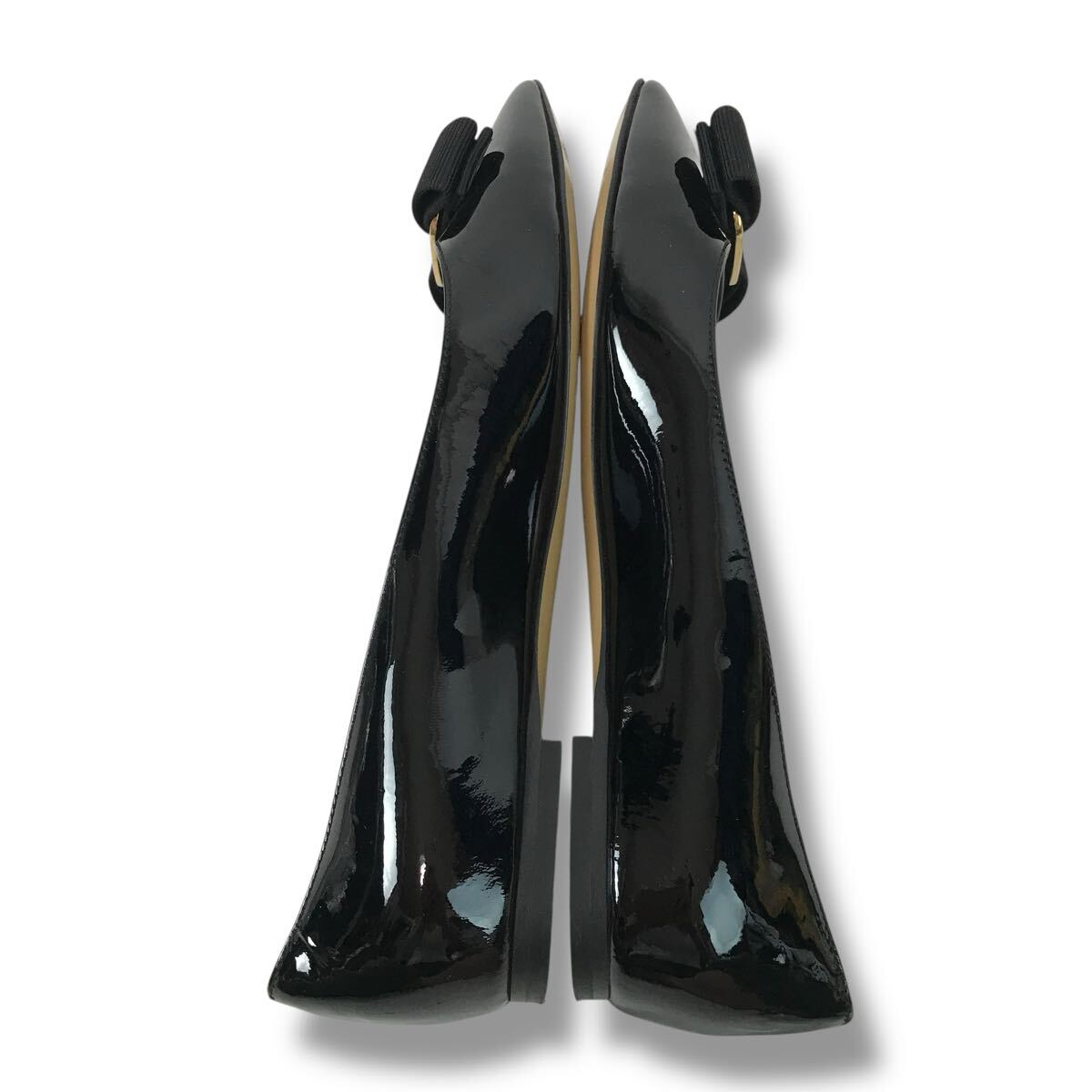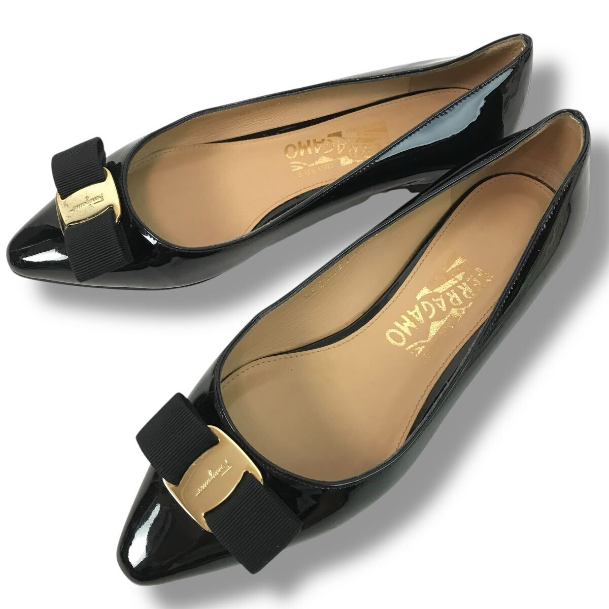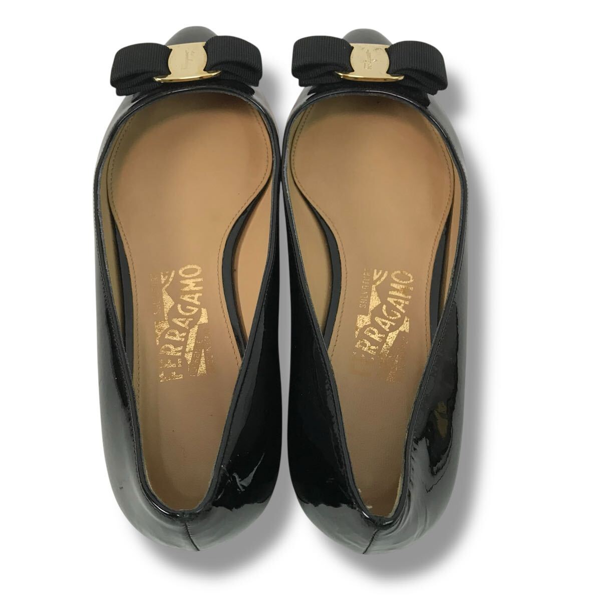d75 Salvatore Ferragamo サルヴァトーレフェラガモ エナメル パンプス ヴァラリボン フラットシューズ ブラック 6 イタリア製 正規品