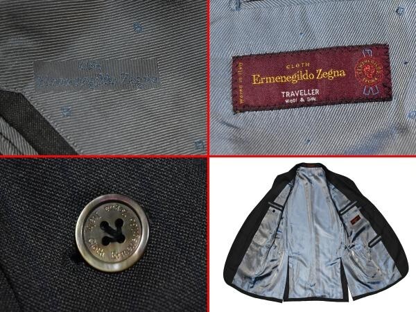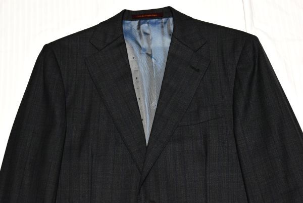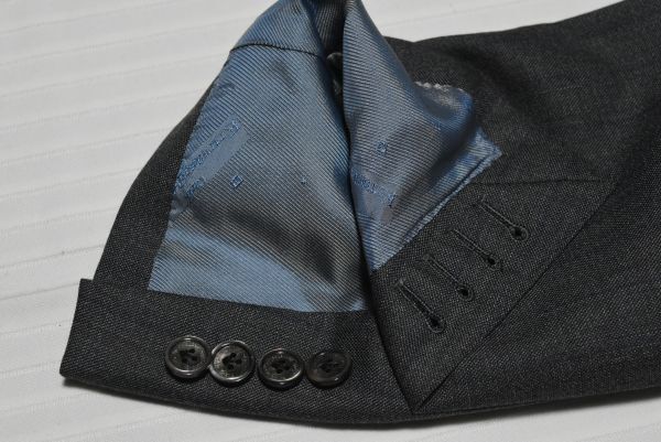 271★Ermenegildo Zegna TRAVELLA★ゼニア★WOOL&SILK絹★魅力的なグレー青系ストライプ#本切羽ディティール極上仕立て心地良く高級スーツL