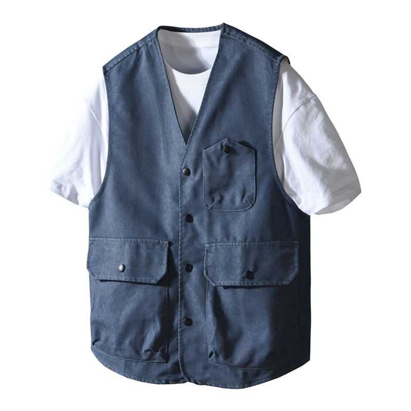 デニムベスト メンズ★新品  袖なしジャケット チョッキ ジレベスト ワークベスト 春秋服 カジュアルベスト【Z884】ブルー 2XL