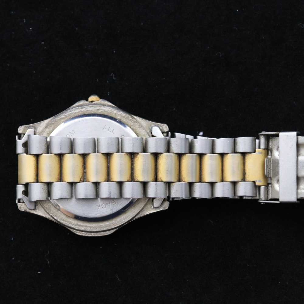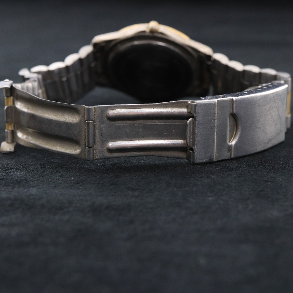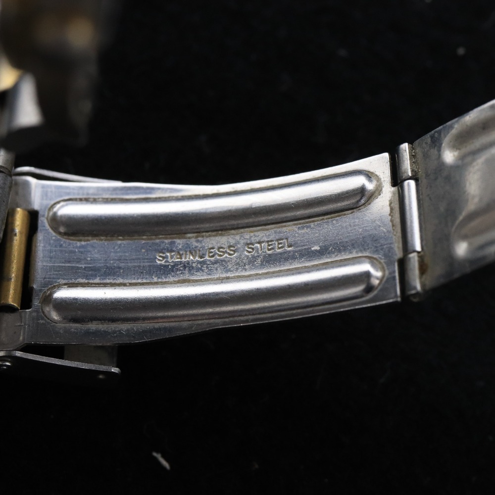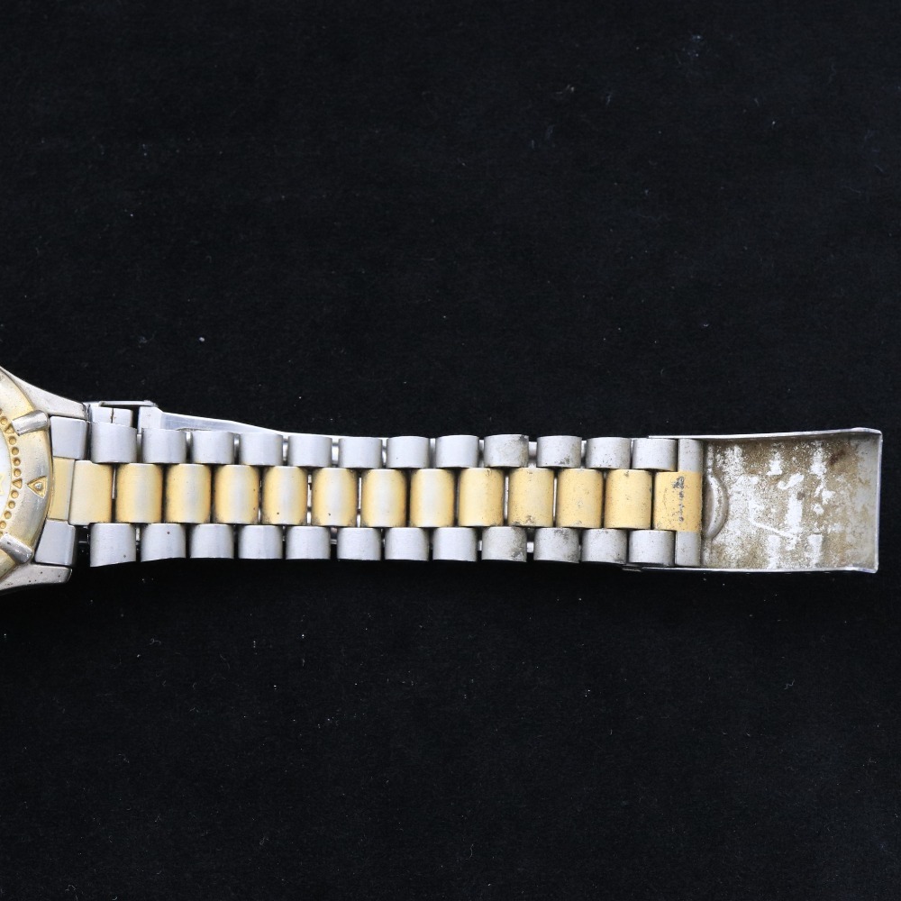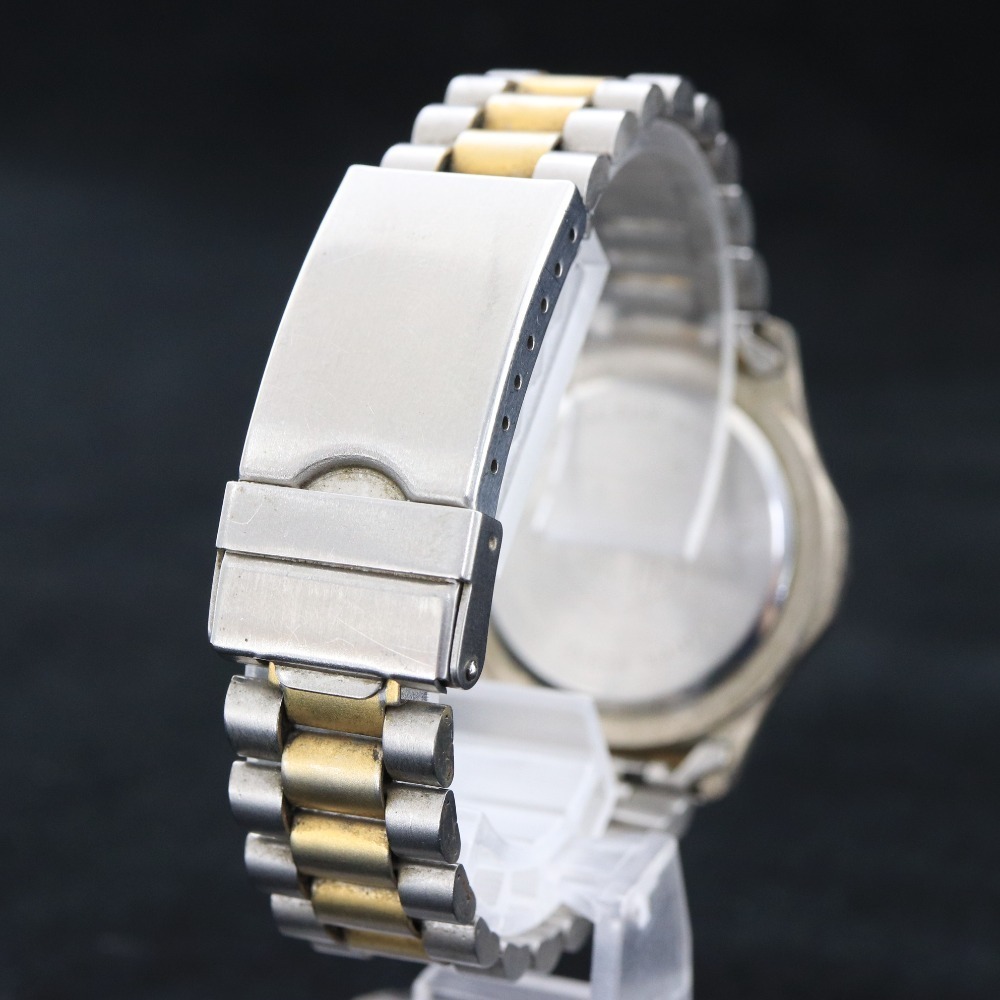 タグホイヤープロフェッショナル 腕時計 クォーツ 59.9g 100M メンズ ゴールド 文字盤 ホワイト ジャンク 付属品:写真のものが全てです ○実寸 腕周り(内周):17cm ケース縦:3.3cm ケース横(リューズ含まず):3.5cm ラグ幅:2.3cm グラム:59.9g ○コンディション ベルト:汚れ ベゼル:傷、汚れ リューズ:汚れ 風防:軽い使用傷 ケース:傷、汚れ 裏蓋:傷、汚れ 文字盤:綺麗な状態 針:綺麗な状態 ⇒ アパレル商品のカラー基準・採寸方法・海外サイズ換算表 (参考)トルソー(マネキン)は男女ともMサイズです。 素材:ステンレススチール | ||||||||||||||||