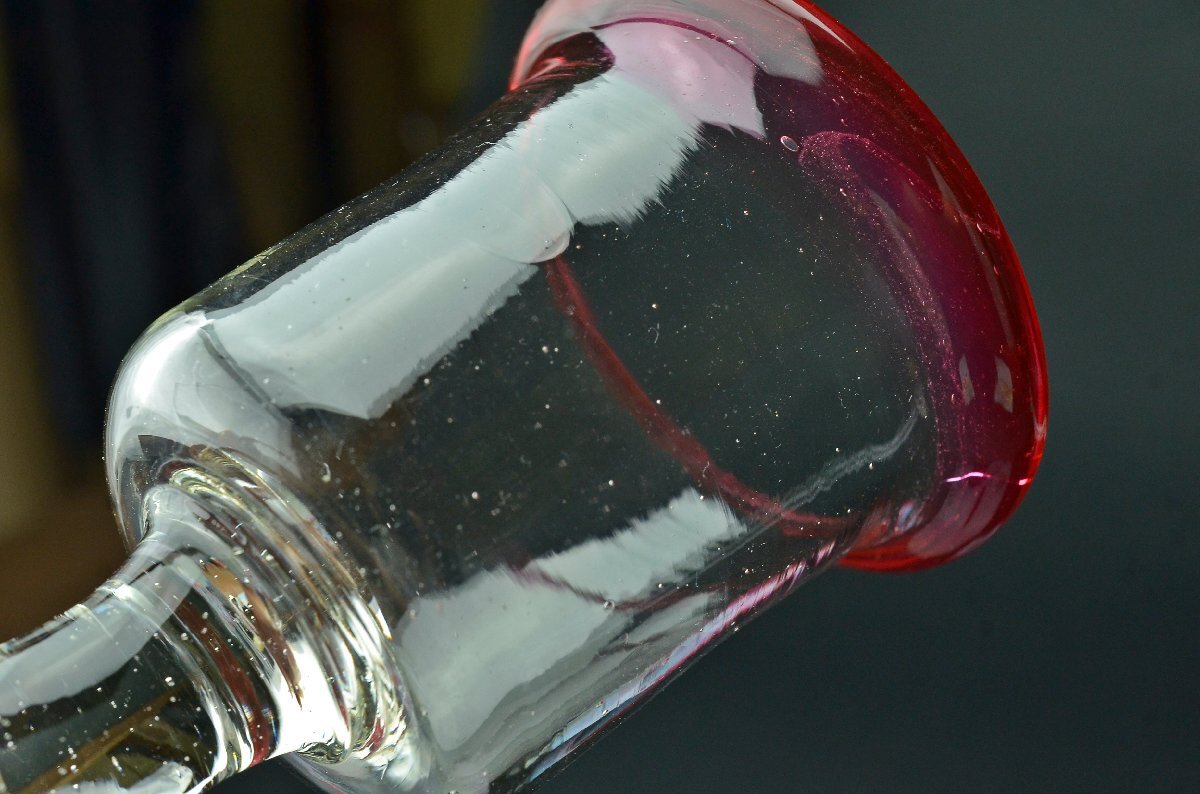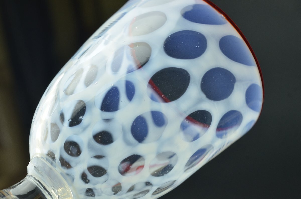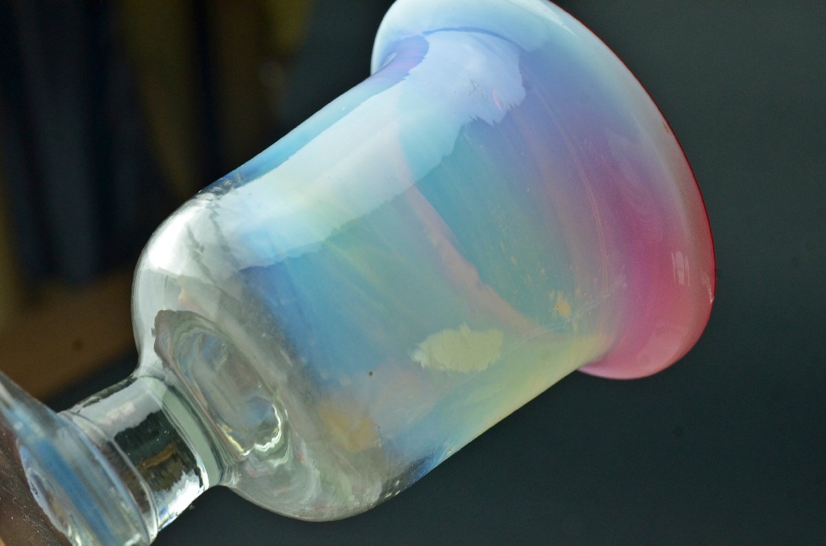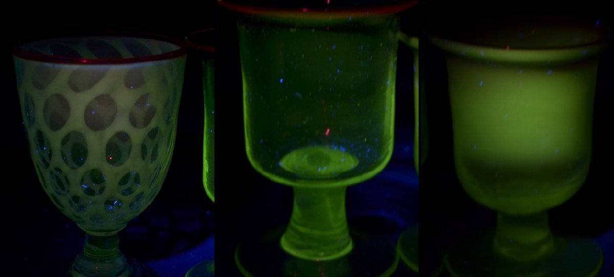 大正~明治ガラス ウランガラス 赤縁乳白色水玉模様・無地・乳白色氷コップ三点