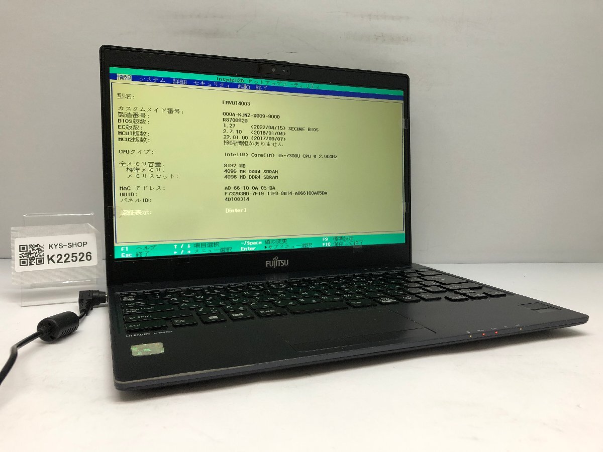 ジャンク/ FUJITSU FMVU14003 LIFEBOOK U938/S Intel Core i5-7300U メモリ8.19GB ストレージ無し 【K22526】