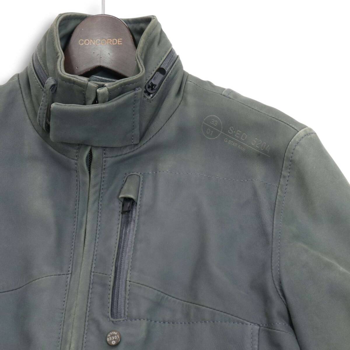 G-STAR RAW ジースター ロウ【REKTOR JKT】羊革 ラム レザー ミリタリー スタンドカラー ライダース ジャケット Sz.S メンズ