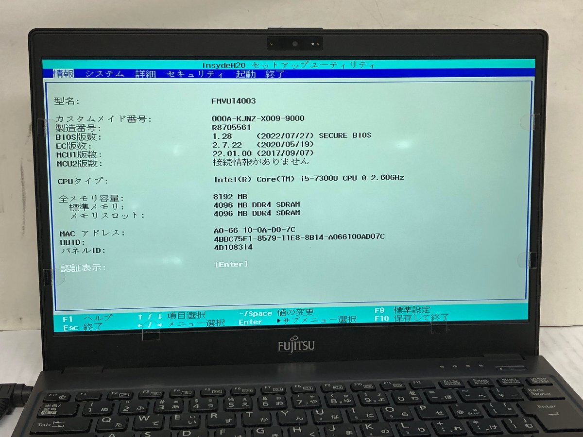 ジャンク/ FUJITSU FMVU14003 LIFEBOOK U938/S Intel Core i5-7300U メモリ8.19GB ストレージ無し 【K22249】