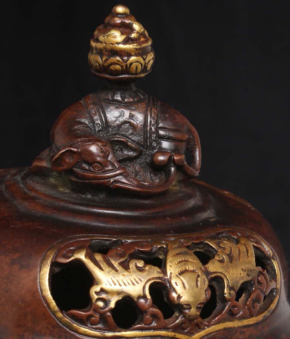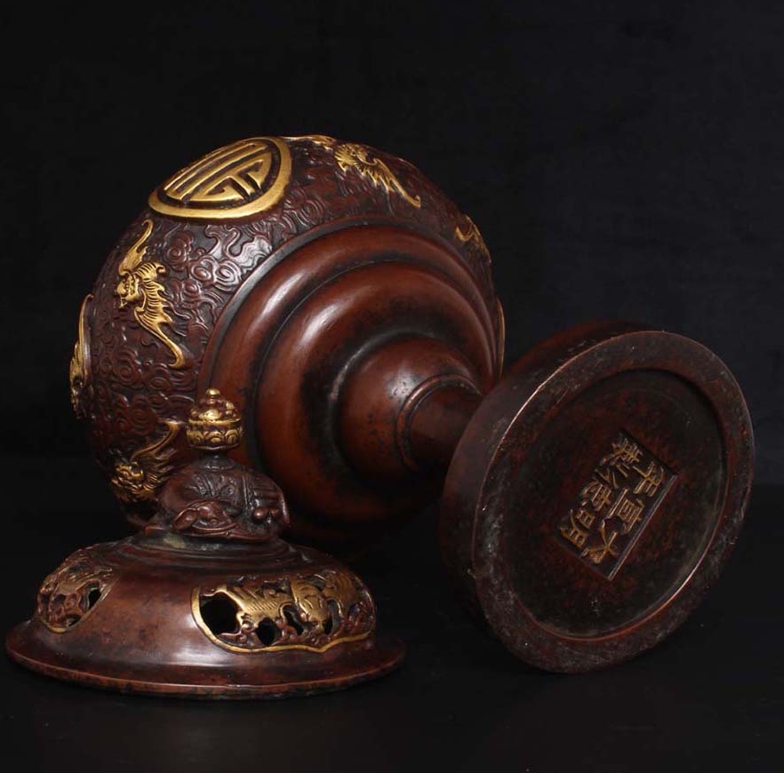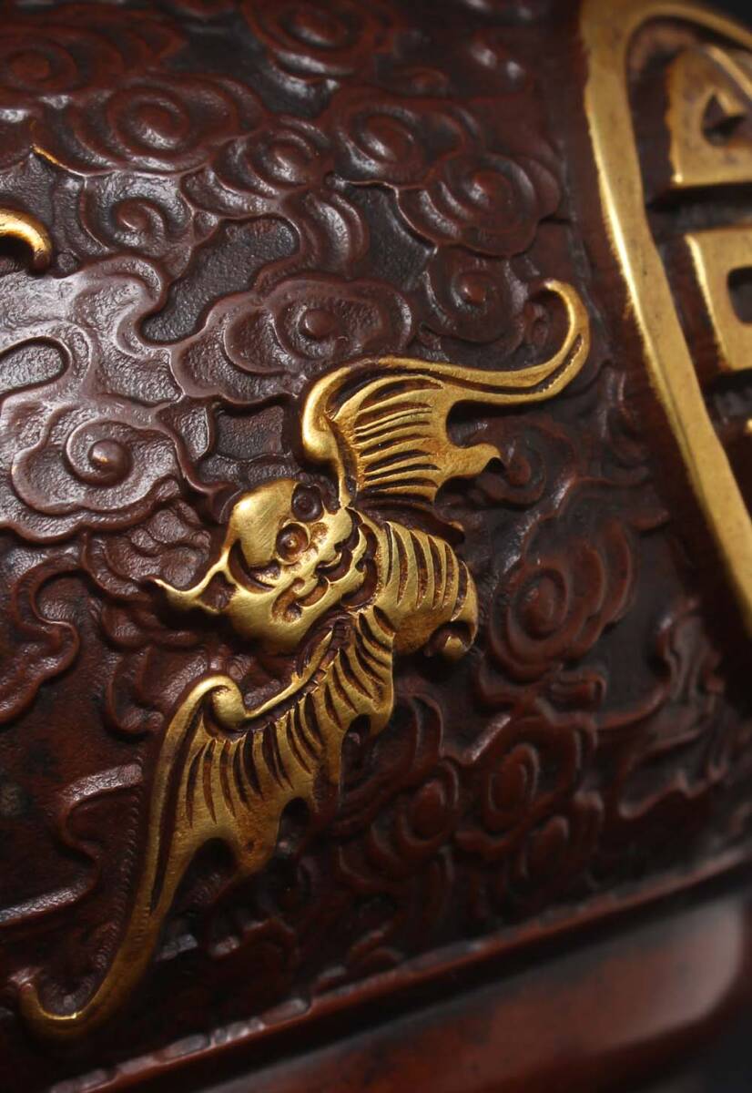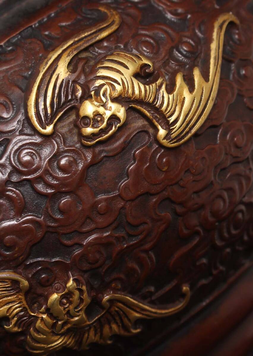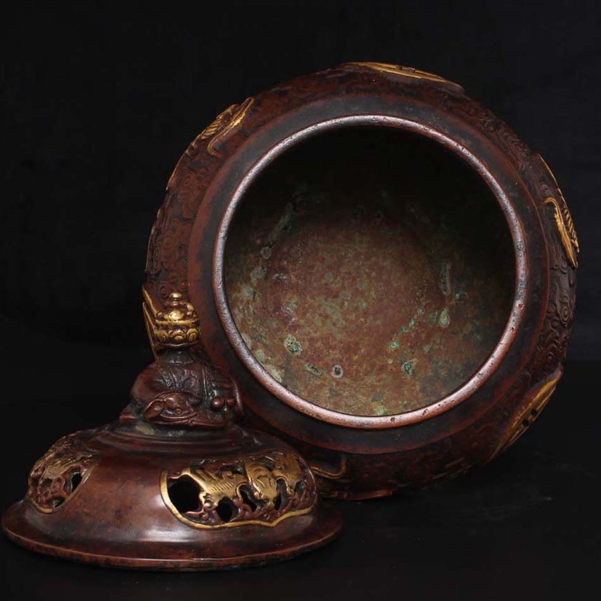 唐物 大明 宣德年製 紫銅塗金 熏爐 銅製 銅器 極細工 古美術品 中国古玩 骨董品 D610