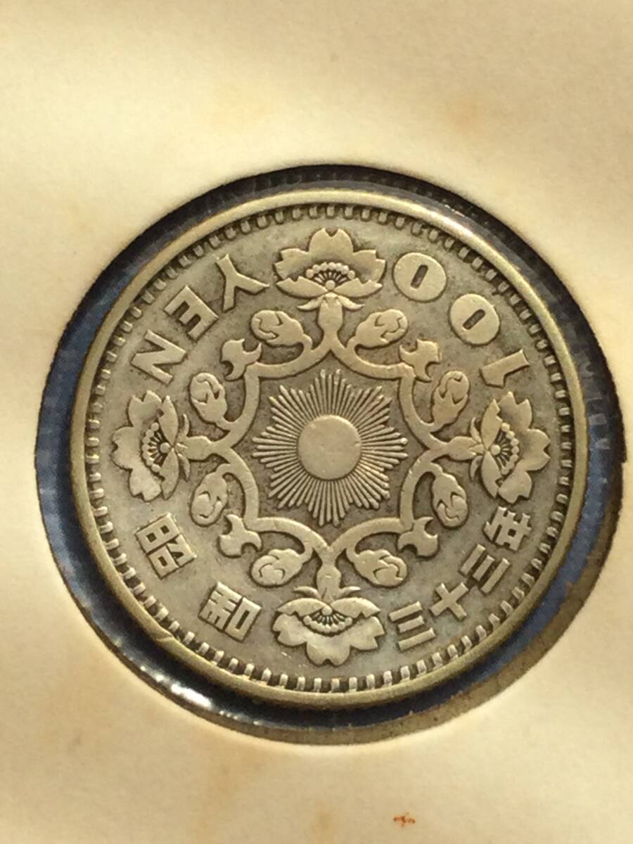 昭和33年発行の鳳凰の100円銀貨です。発行されたのは僅か2年だけの、とても希少な銀貨で、状態もまあまあですので、この機会にいかがでしょうか。気に入られましたらどうぞよろしくご入札下さい。