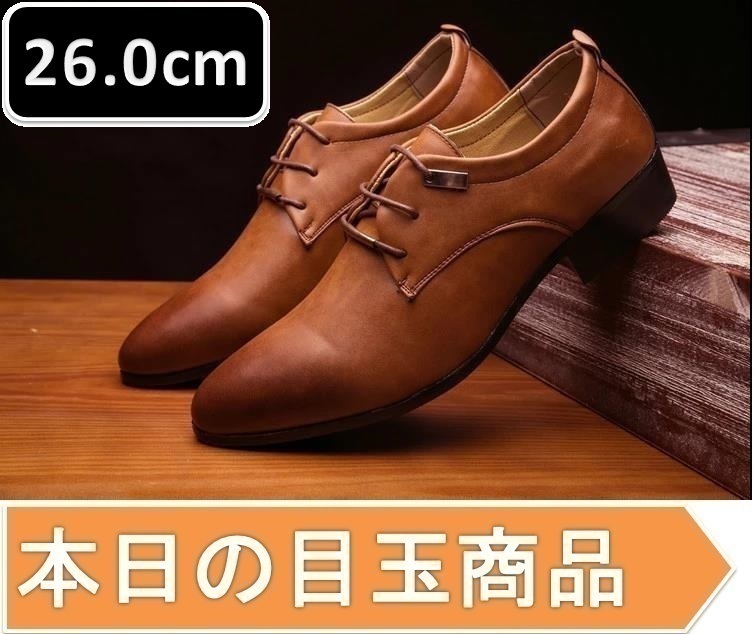 1スタ ☆ メンズ ビジネス レザー シューズ ブラウン サイズ 26.0cm 革靴 靴 カジュアル 屈曲性 通勤 軽量 柔らかい 新品 【apa-156】
