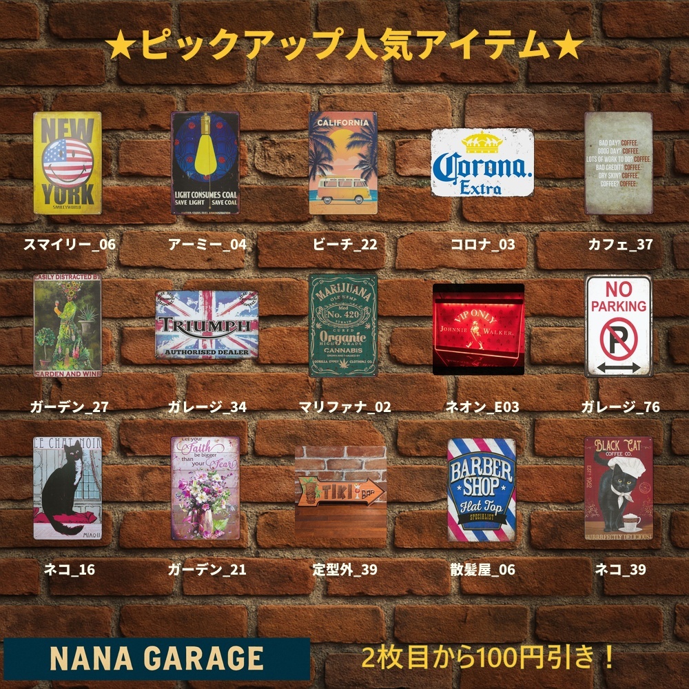 海外直輸入のヴィンテージ風ブリキ看板を中心に、