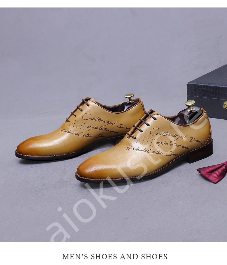 26-28cm 綺麗 本革 韓流 正装 革靴 紳士 紐靴 オフィス 単靴 ビジネスシューズ 職人手作り 冠婚葬祭 メンズシューズ グレーン##A025