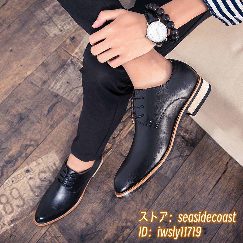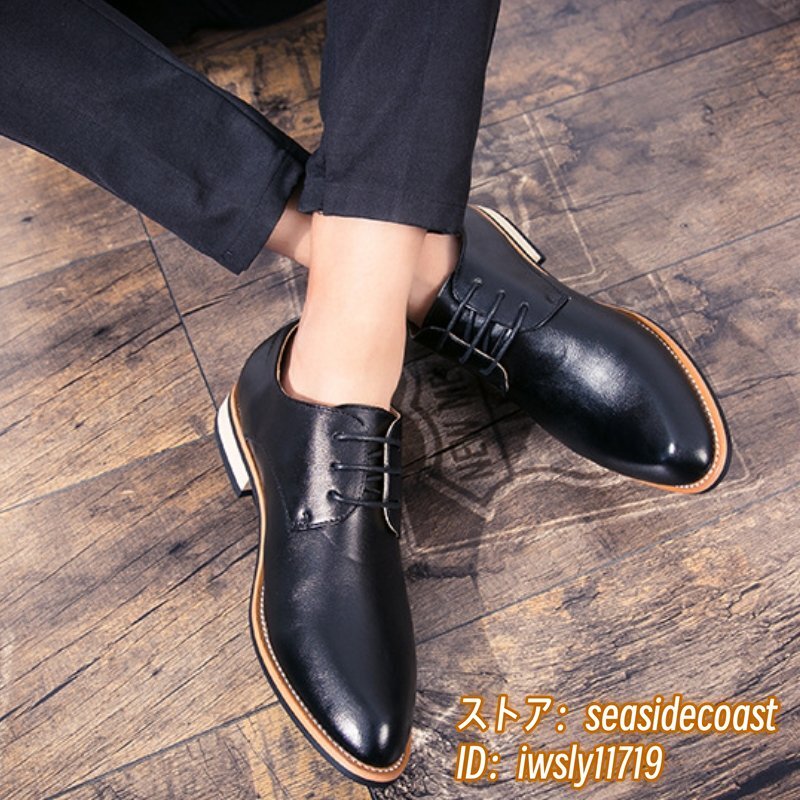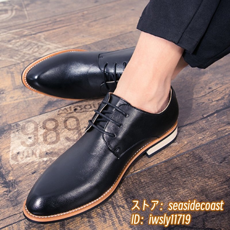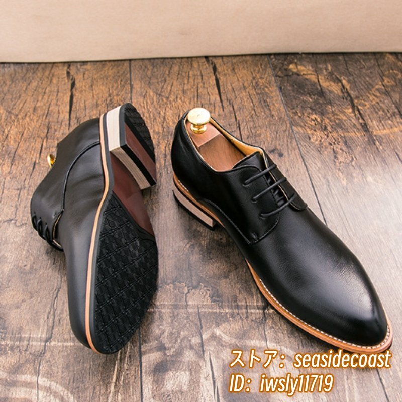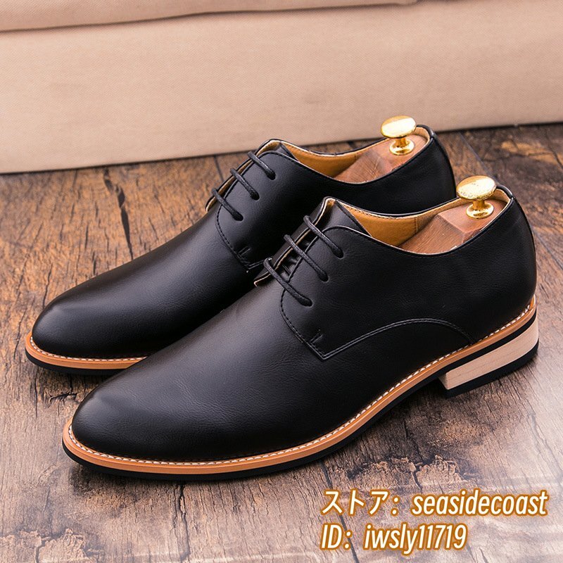 高級品*ビジネスシューズ メンズ 牛革 レザーシューズ 手作り レトロ 紳士靴 イギリス風 革靴 通勤 カジュアル 冠婚葬祭 ブラック 24.5cm