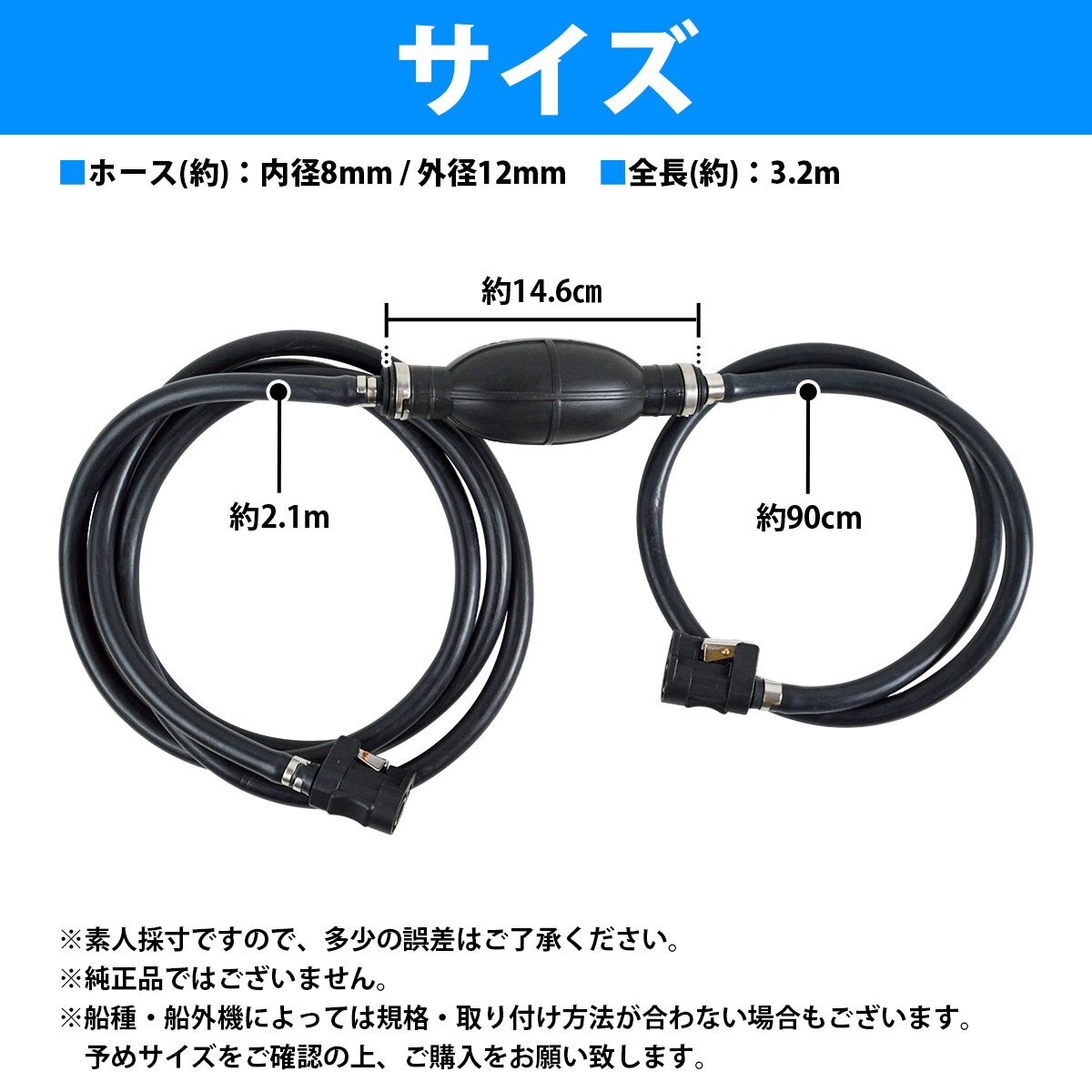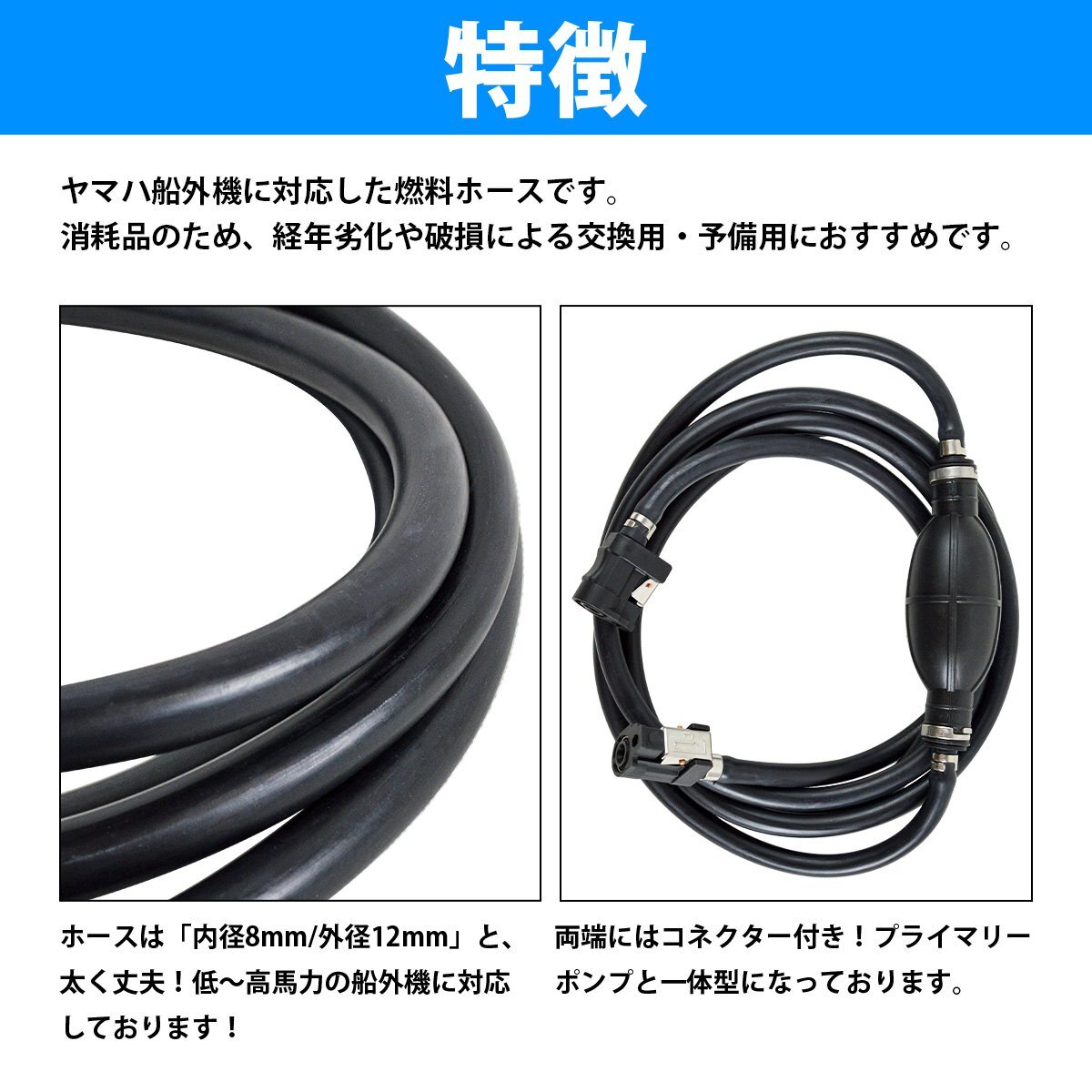 ホースは「内径8mm/外径12mm」と太く丈夫で、低~高馬力の船外機に対応しております!