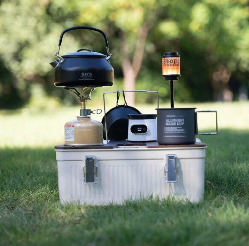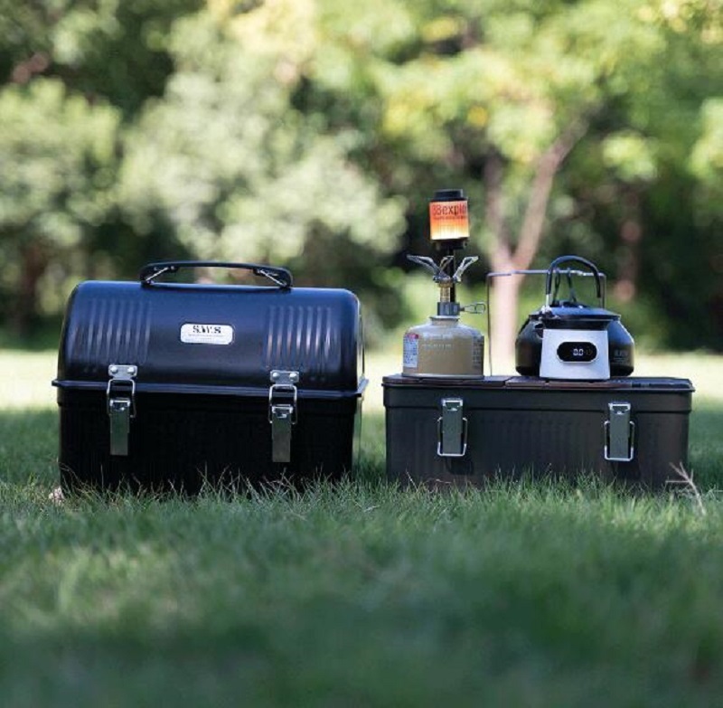 アウトドア コーヒーボックス クッカーケース 小物収納 ランチボックス 収納ボックス 鉄製 32.5×17×26cm キャンプ 野外登山 黑