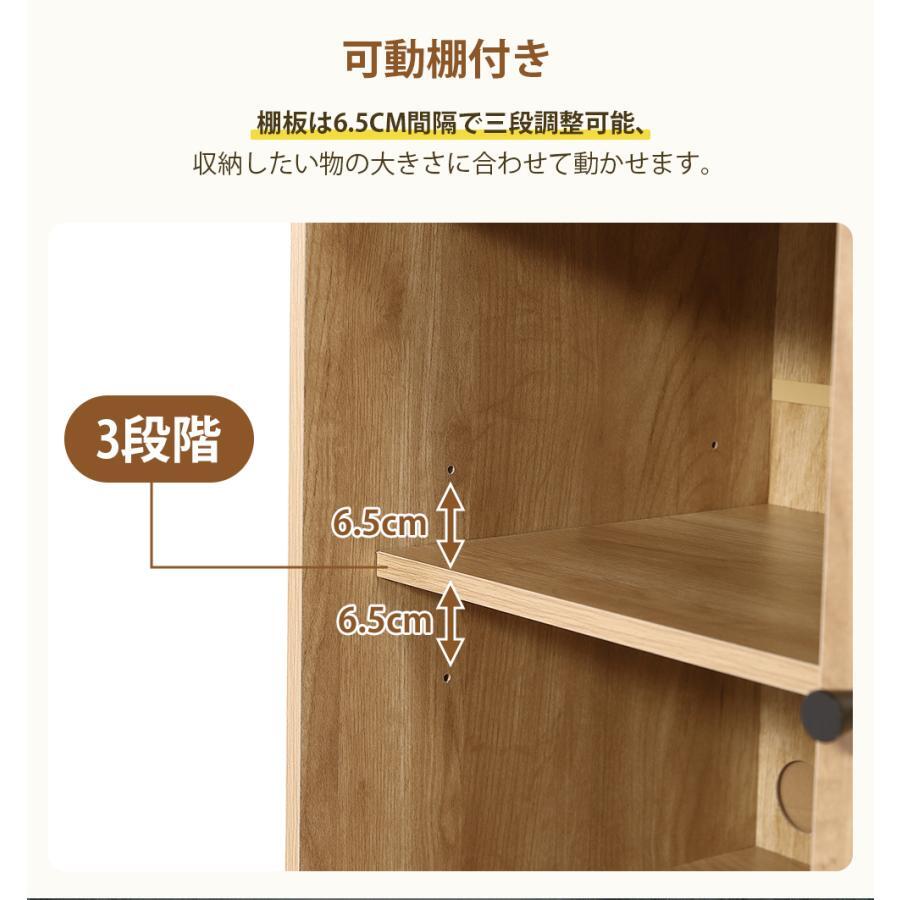 • 【可動棚付き】棚板は6.5cm間隔で三段調整可能、収納したい物の大きさに合わせて動かせます。