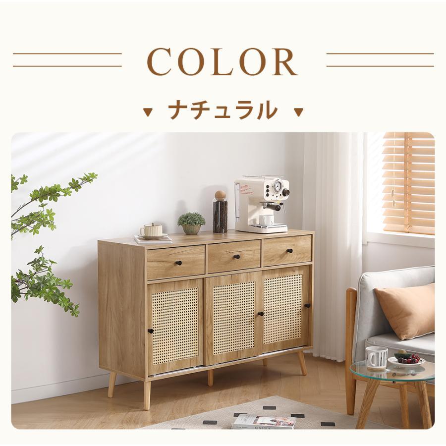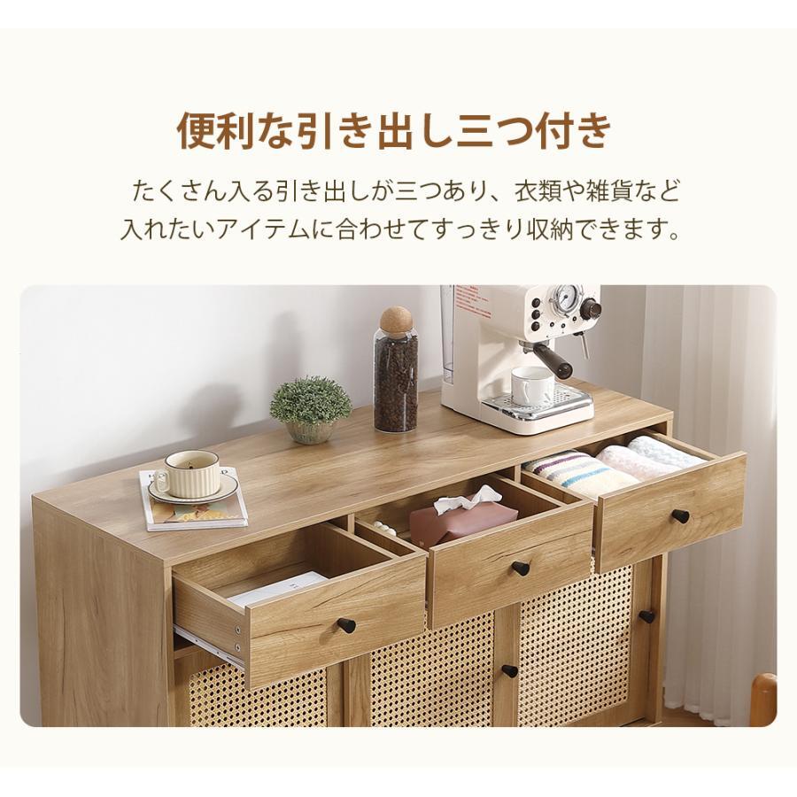 キャビネット サイドボード チェストラタン調 ラタン風 引き出し付き 大容量 収納棚 リビング 収納 ローボード 収納【ナチュラル】