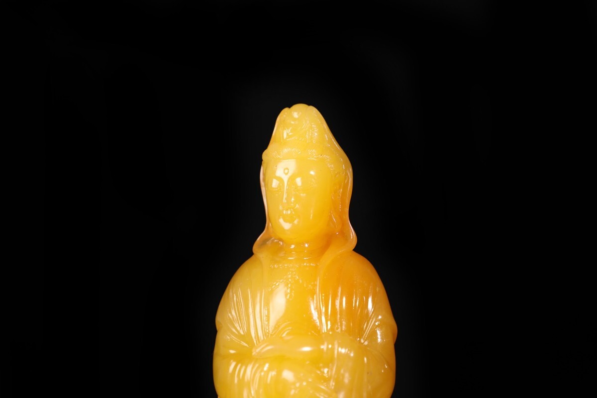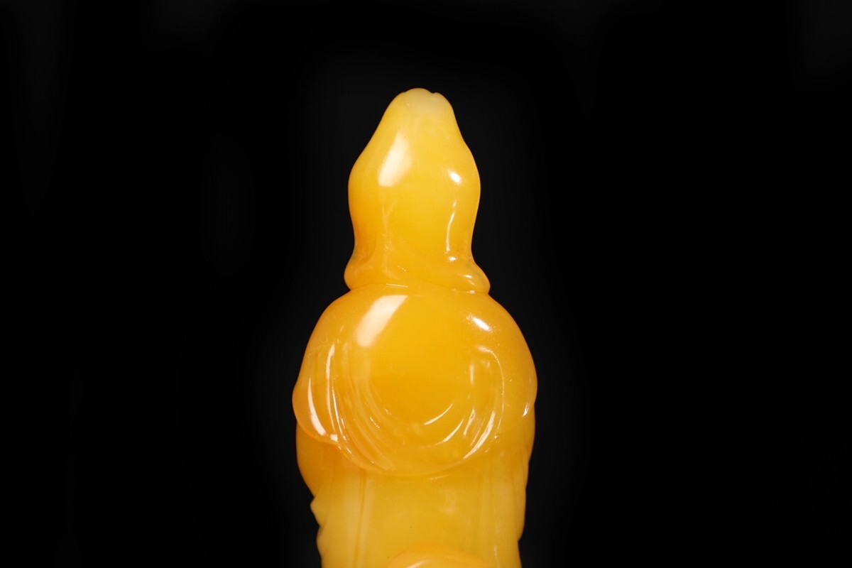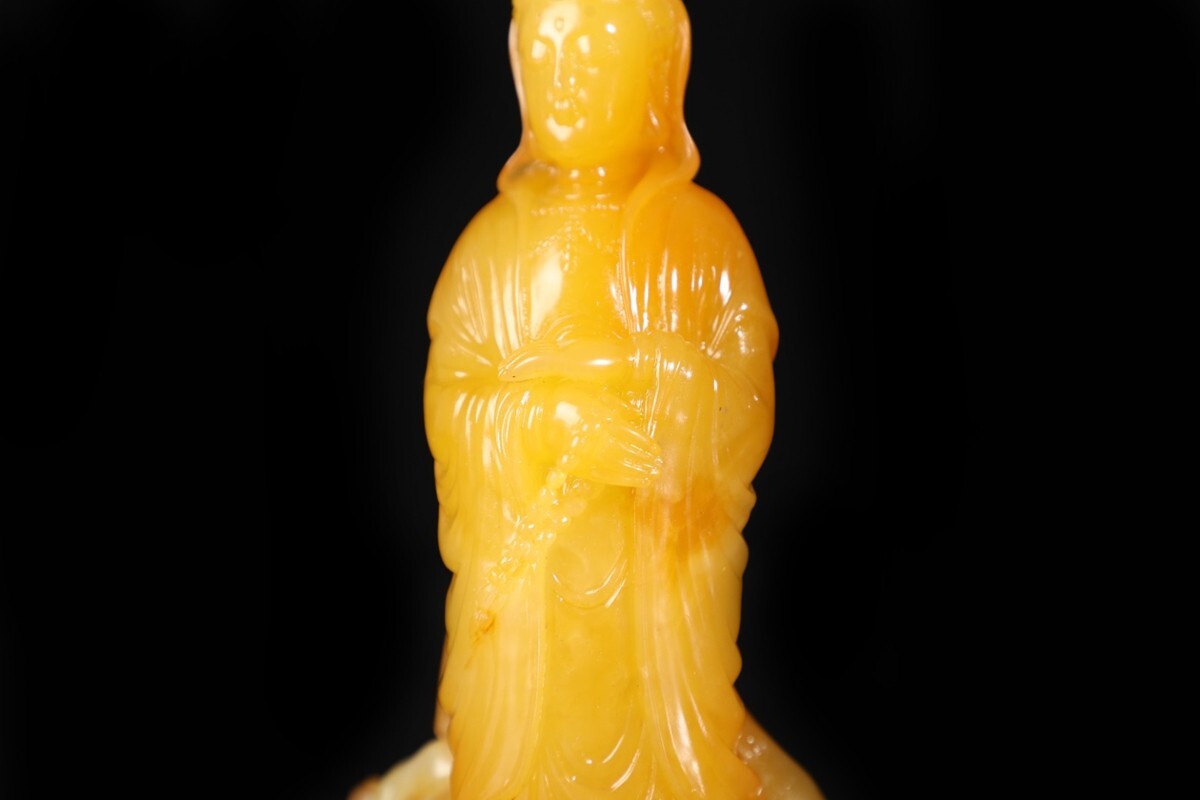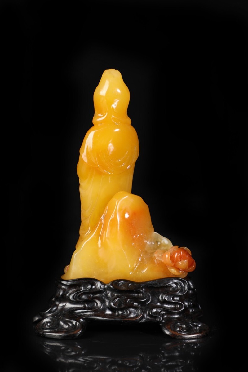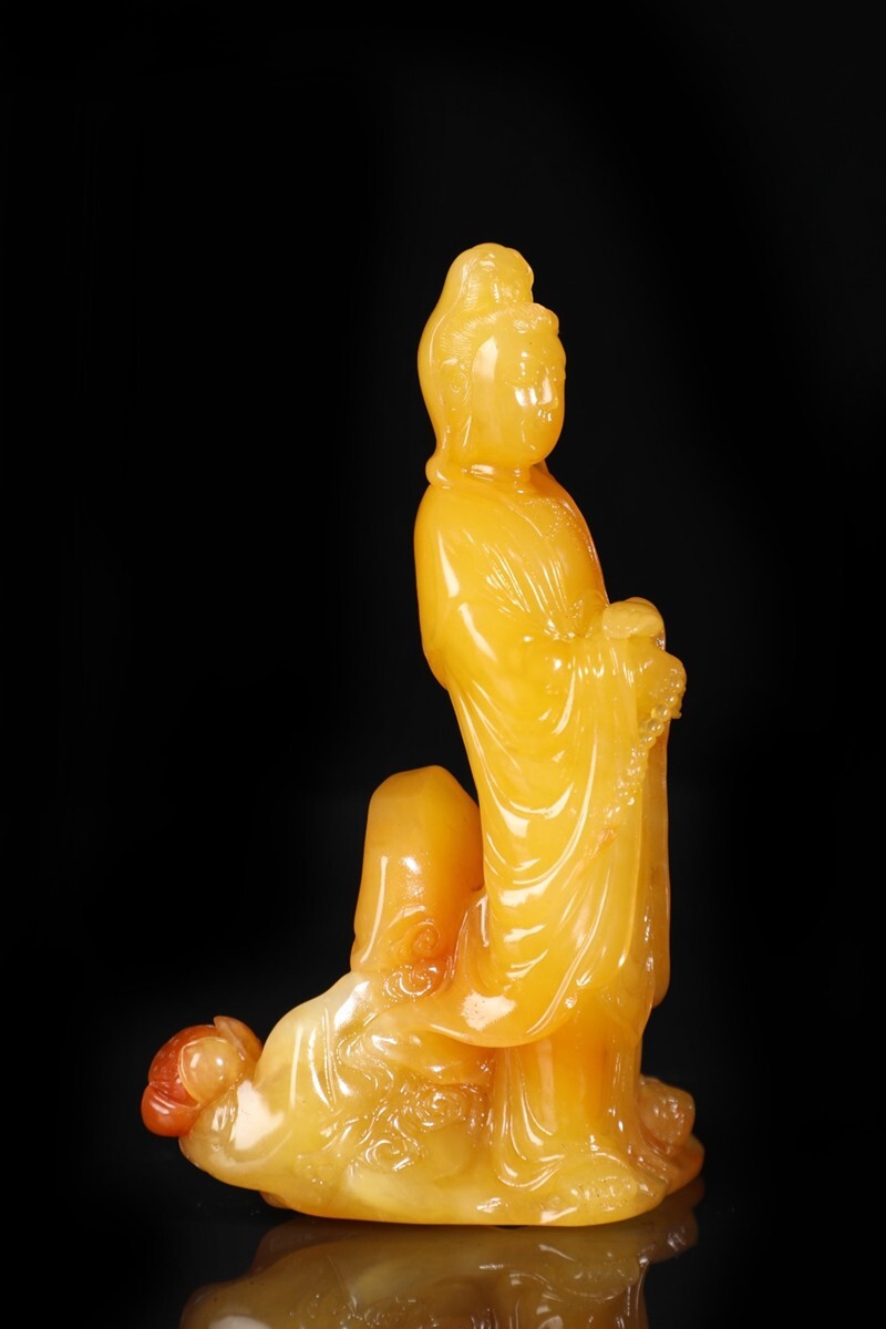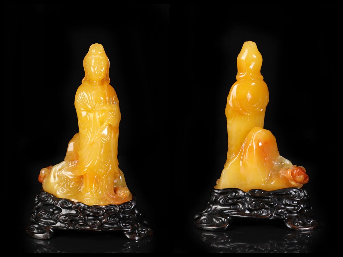 「清時代 老寿山石 田黄石彫り 観音造像」極細工 擺件 古賞物 中国古美術 旧蔵出