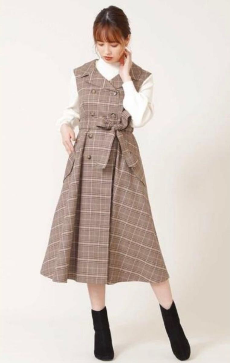 チェック トレンチ シャツ ノースリーブ ワンピース