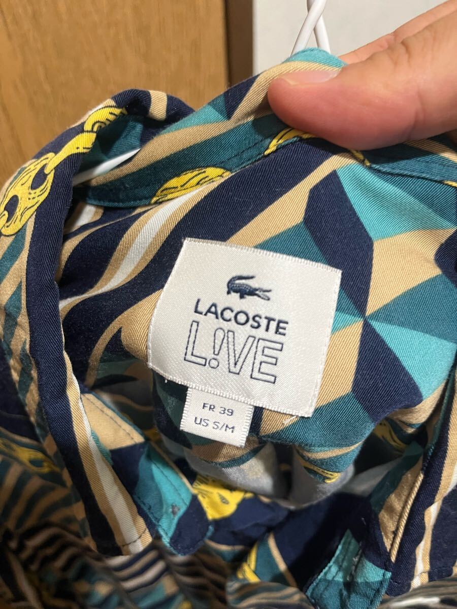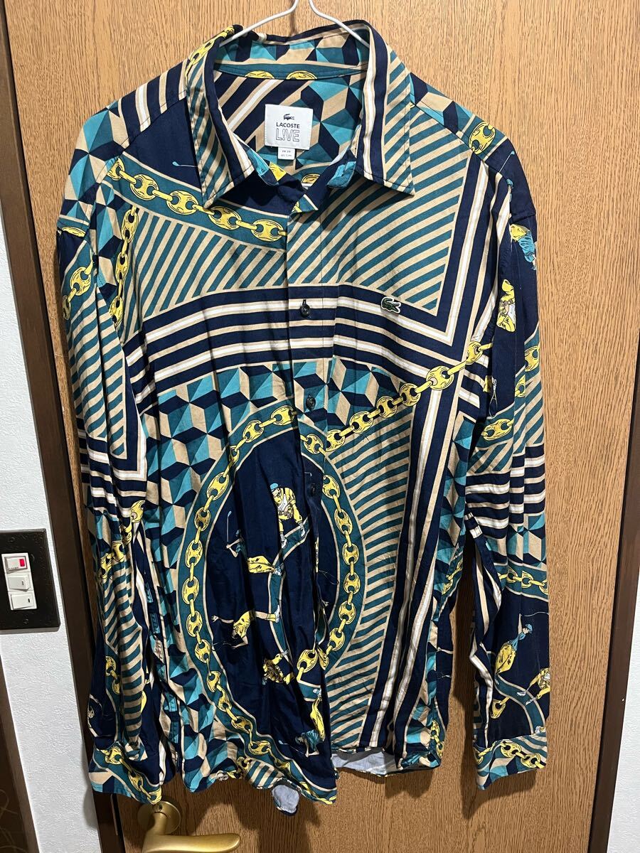 ラコステ ライブ LACOSTE L! i VE スカーフ 総柄 長袖 シャツ アンカー チェーン 柄 ヴィンテージ レトロ デザイン