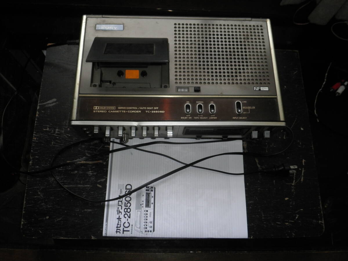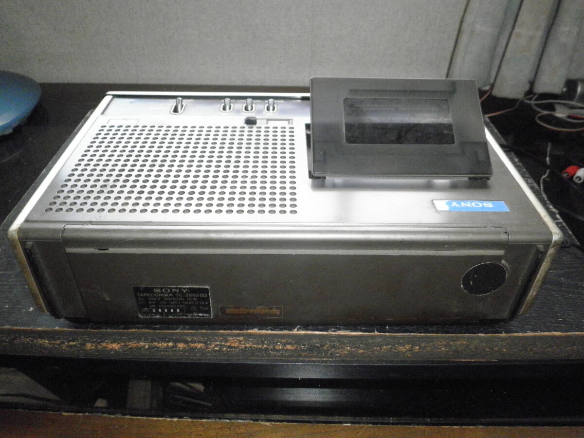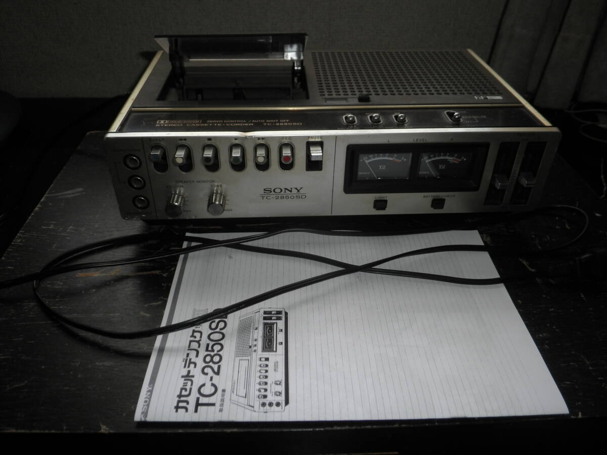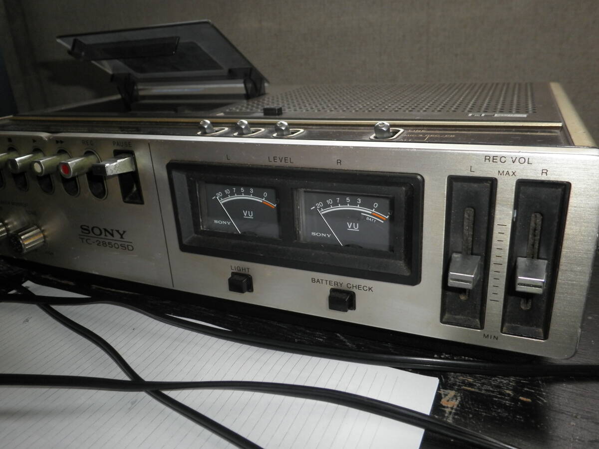 ☆送料無料!信頼度世界一:ソニーのカセットデンスケ TC-2850SDです。※ジャンク、返品不可です:※再生,早送り.戻しは出来ますが音が出ません。時間と腕がありませんのでその分お安く出品いたします。回路図もついていますので電気がわかる人、修理専門店もありますのでぜひ修理されて名機をよみがえらせてください。※電源コードは適合品、ロゴは製作品です。電池ケーススポンジが劣化しています。黒く塗ったスポンジをつければOKです。☆電源コードと取扱説明書の複製本をお付けします。電池でも作動します。以下蘇り元気になりました時の説明です。戸外で生録ができ、屋外でも音が楽しめます。家庭でオーディオにつなげばデッキになり一世を風靡しました。☆ドルビーノイズリダクション搭載。☆テープパス系のクリーニング、メカ部の注油、ヘッドの消磁、ピッチ調整等施しています。☆メーターライトもL、Rとも点灯し、振れます。電池でも作動します。☆再生(プレイ)、巻き戻し(REW)、早送り(FF)、一時停止(ポーズ)機能もOK。☆ライン/マイク切換スイッチを搭載。ライン/マイクとも録音OKです。マイクはL、R独立ジャックでステレオサウンドで録音が可能。RECレベルは左右独立レベルボリューム。☆大入力にも安心なソニーリミッター録音方式採用。20dBのマイクアッテネーターを搭載。☆ノーマル、クロームのテープに対応。☆磨耗に強いフェライトアンドフェライトヘッド搭載。☆電圧を安定させる安定化電源とDC-DCコンバーターを搭載。☆1973年に57,800円もする高嶺の花で手の届かなかった大ヒット・カセットデンスケのプレミア、ビンテージ品です。所有され自慢されてください。☆落札いただきましたら感謝の気持ちを込めまして、送料をサービスいたし9割引の価格です。よろしくお願いいたします。