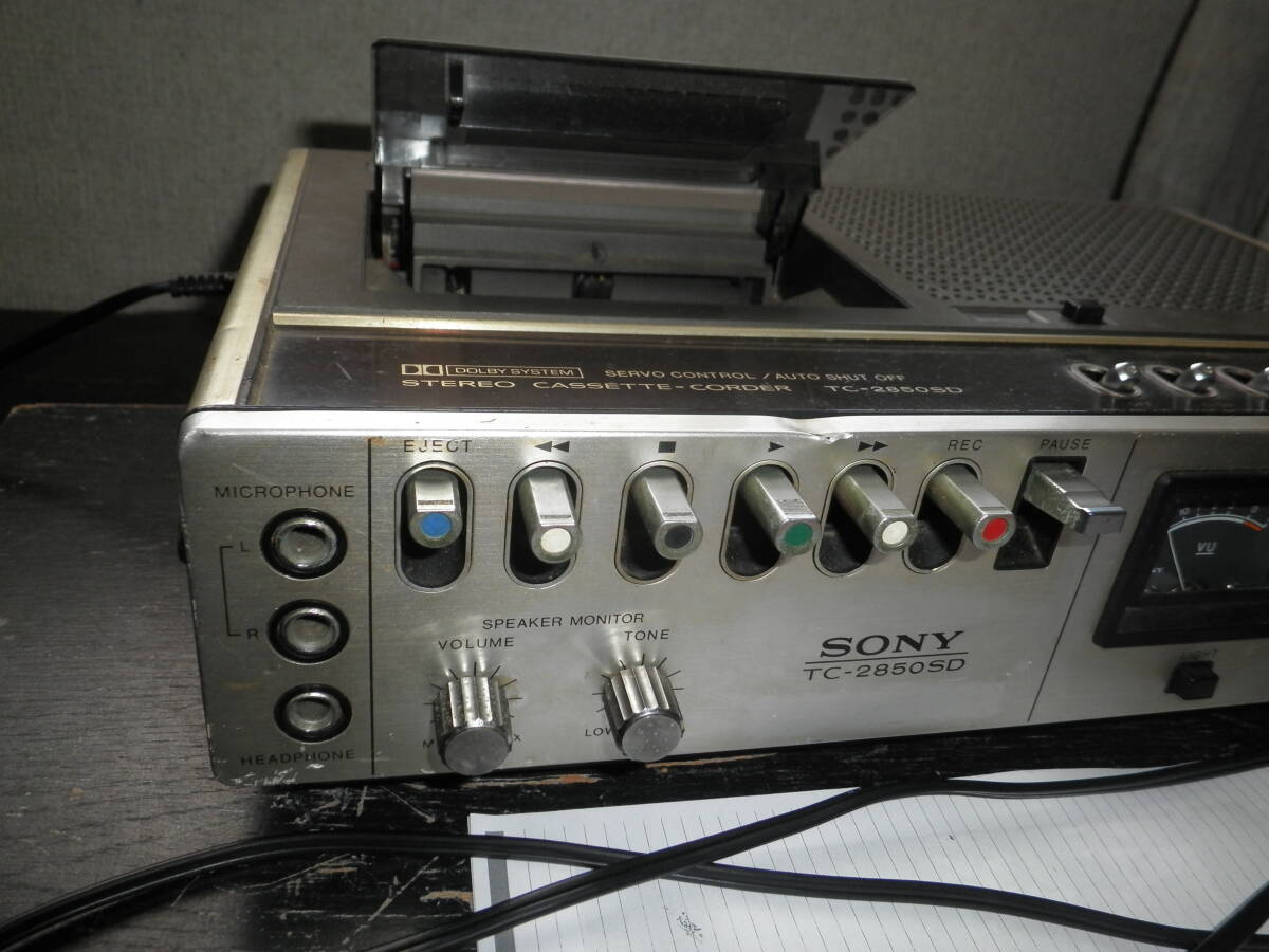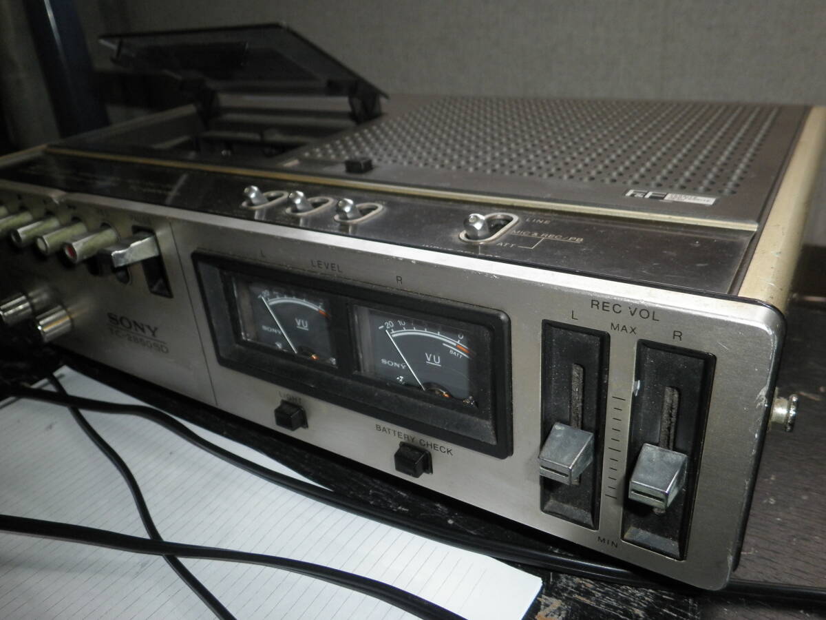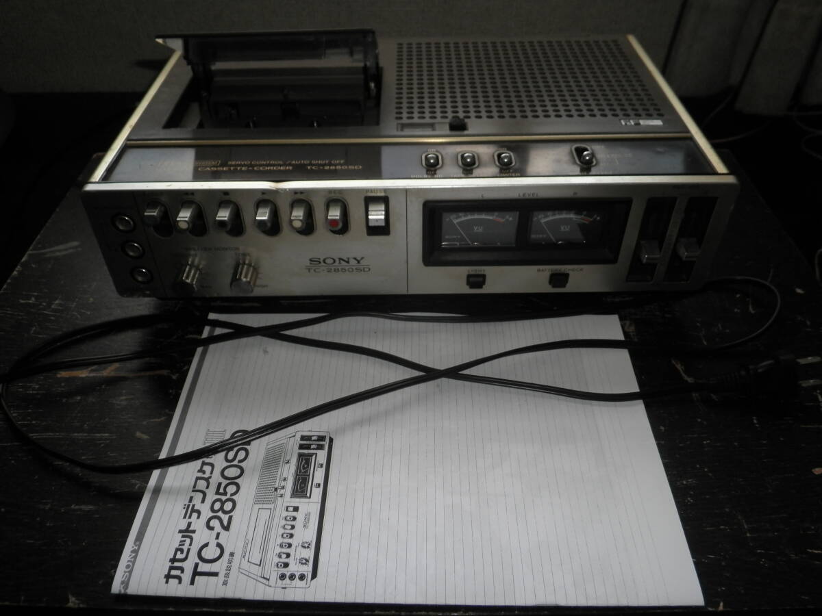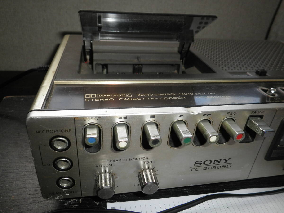 ☆送料無料!信頼度世界一:ソニーのカセットデンスケ TC-2850SDです。※ジャンク、返品不可です:※再生,早送り.戻しは出来ますが音が出ません。時間と腕がありませんのでその分お安く出品いたします。回路図もついていますので電気がわかる人、修理専門店もありますのでぜひ修理されて名機をよみがえらせてください。※電源コードは適合品、ロゴは製作品です。電池ケーススポンジが劣化しています。黒く塗ったスポンジをつければOKです。☆電源コードと取扱説明書の複製本をお付けします。電池でも作動します。以下蘇り元気になりました時の説明です。戸外で生録ができ、屋外でも音が楽しめます。家庭でオーディオにつなげばデッキになり一世を風靡しました。☆ドルビーノイズリダクション搭載。☆テープパス系のクリーニング、メカ部の注油、ヘッドの消磁、ピッチ調整等施しています。☆メーターライトもL、Rとも点灯し、振れます。電池でも作動します。☆再生(プレイ)、巻き戻し(REW)、早送り(FF)、一時停止(ポーズ)機能もOK。☆ライン/マイク切換スイッチを搭載。ライン/マイクとも録音OKです。マイクはL、R独立ジャックでステレオサウンドで録音が可能。RECレベルは左右独立レベルボリューム。☆大入力にも安心なソニーリミッター録音方式採用。20dBのマイクアッテネーターを搭載。☆ノーマル、クロームのテープに対応。☆磨耗に強いフェライトアンドフェライトヘッド搭載。☆電圧を安定させる安定化電源とDC-DCコンバーターを搭載。☆1973年に57,800円もする高嶺の花で手の届かなかった大ヒット・カセットデンスケのプレミア、ビンテージ品です。所有され自慢されてください。☆落札いただきましたら感謝の気持ちを込めまして、送料をサービスいたし9割引の価格です。よろしくお願いいたします。