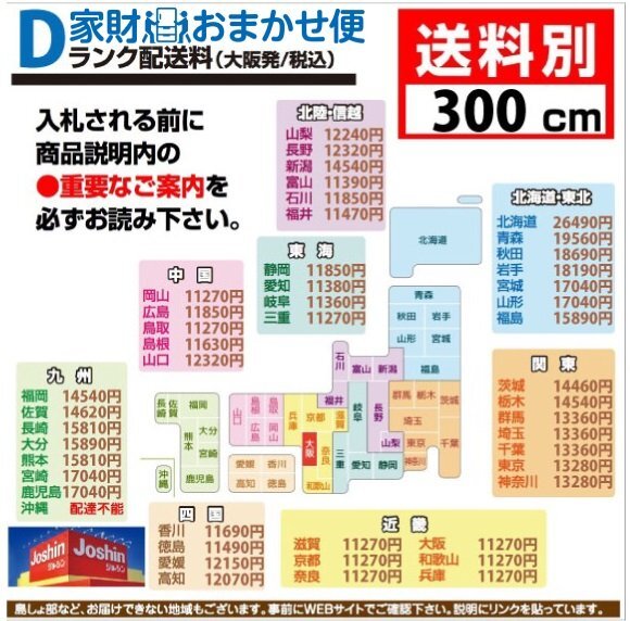 (注意:3)なお、離島(淡路島内も拠点がないため離島扱いで配達できません)など配達業者がお届けできない地域もございます。その際は恐れ入りますが落札キャンセルとさせていただきます。