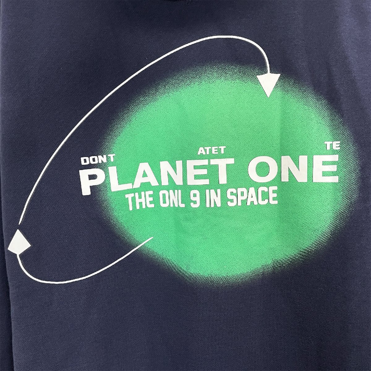 身幅やアームホールに少しゆとりを持たせた現代的なルーズシルエットにデザインされ、フードには色分けされたドローコードが付いているので、絞ることでシルエットの変化を楽しめます。バックの大きなプリントがストリート感を演出!フロントはシンプルな無地で、左胸にはファッショナブルなカラーのゴムラベル付き。カンガルーポケットも付いていて、小物を入れたり、手を入れたりするのに便利なデザインです。