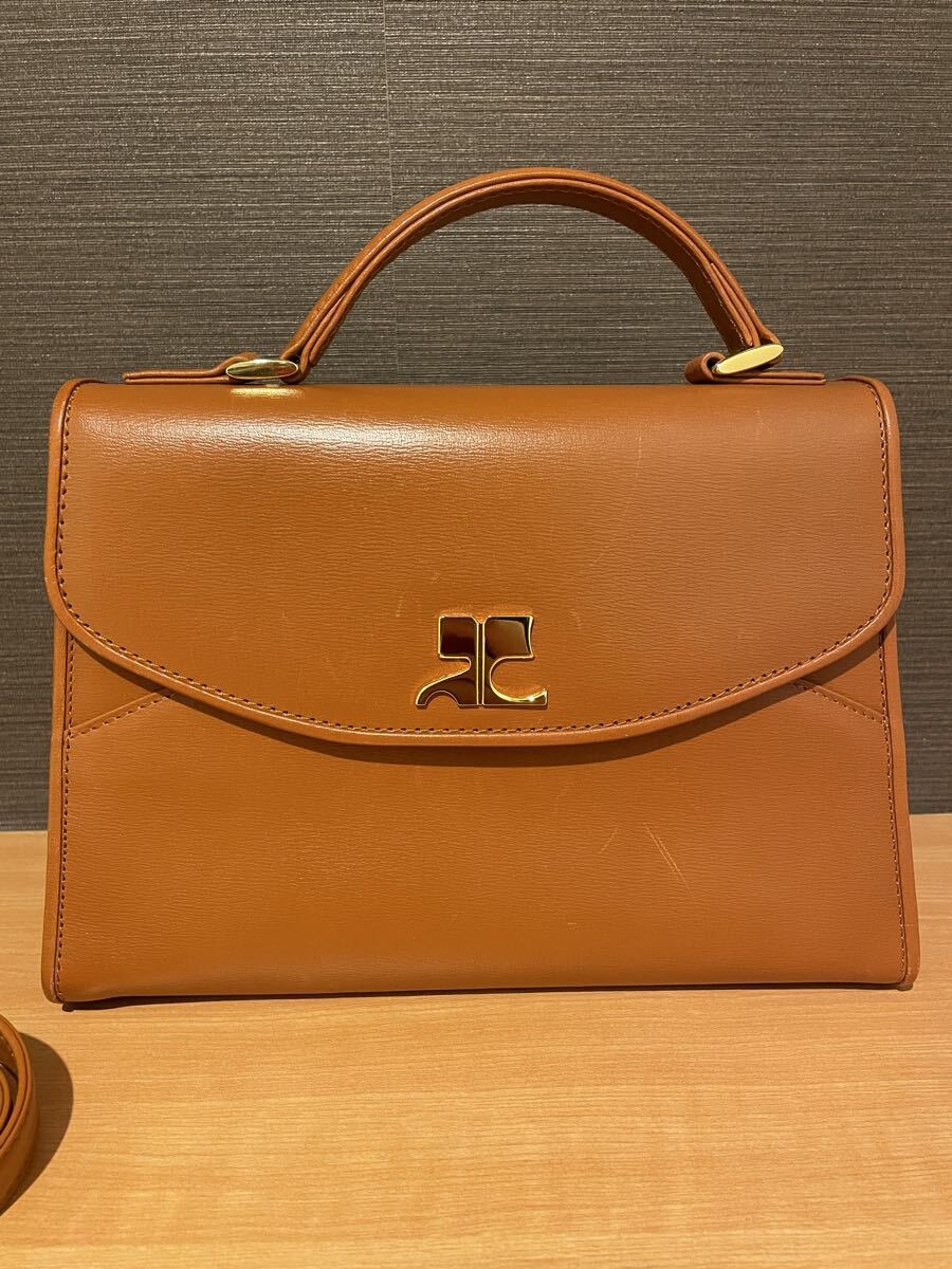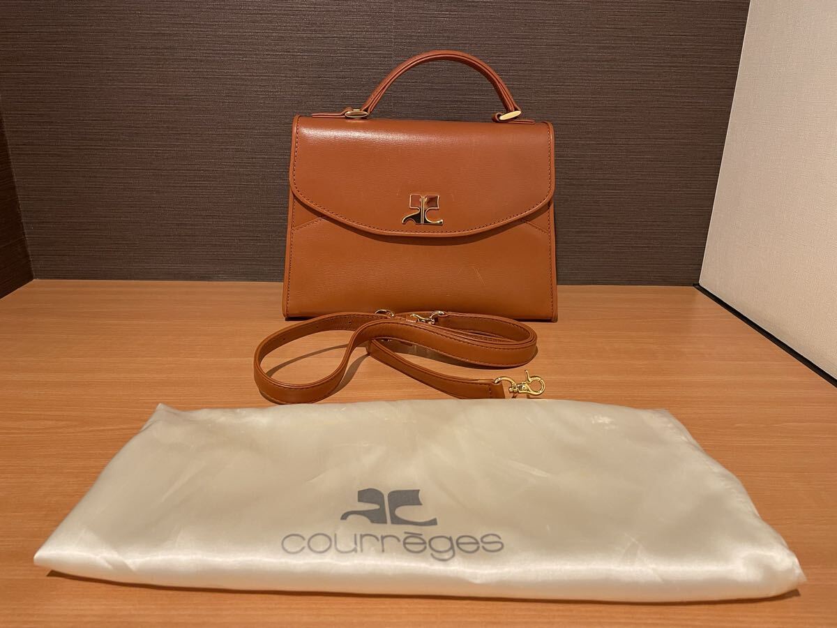 商品名 :中古 courreges ショルダーバッグ ハンドバッグ 2way ブラウン クレージュ 保存袋付き