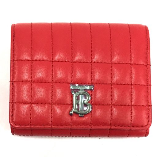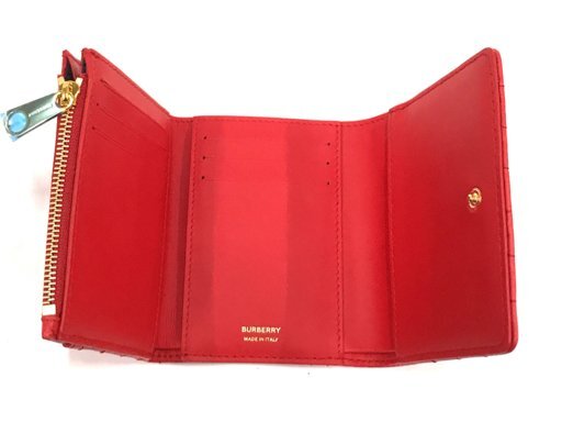 新品同様 バーバリー 三つ折り財布 コンパクトウォレット レッド レディース 8064824/A1460 保存袋付き BURBERRY UE |