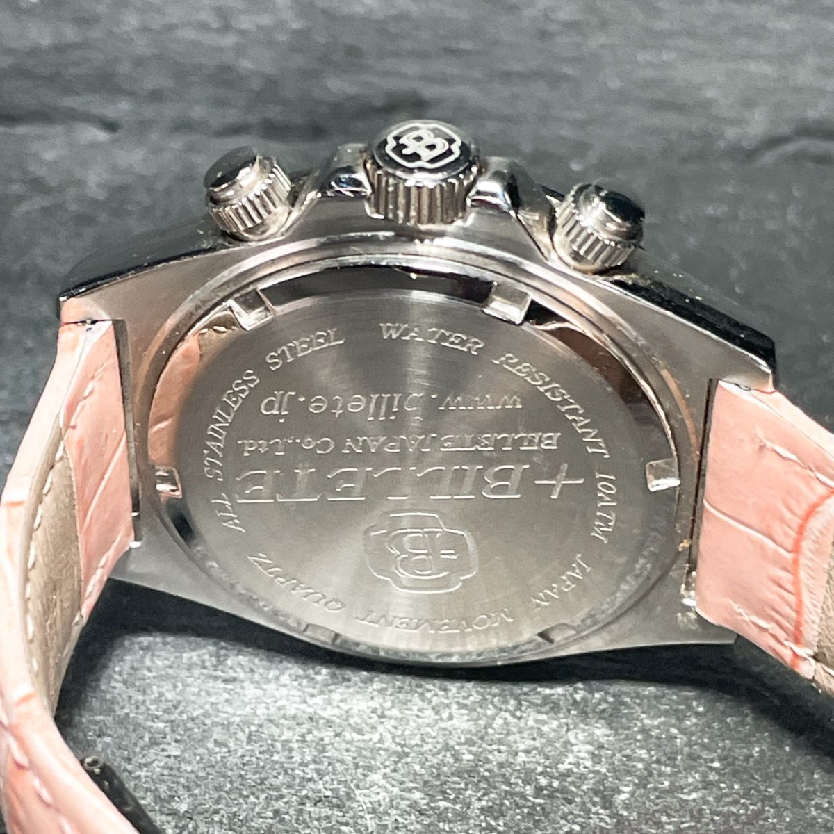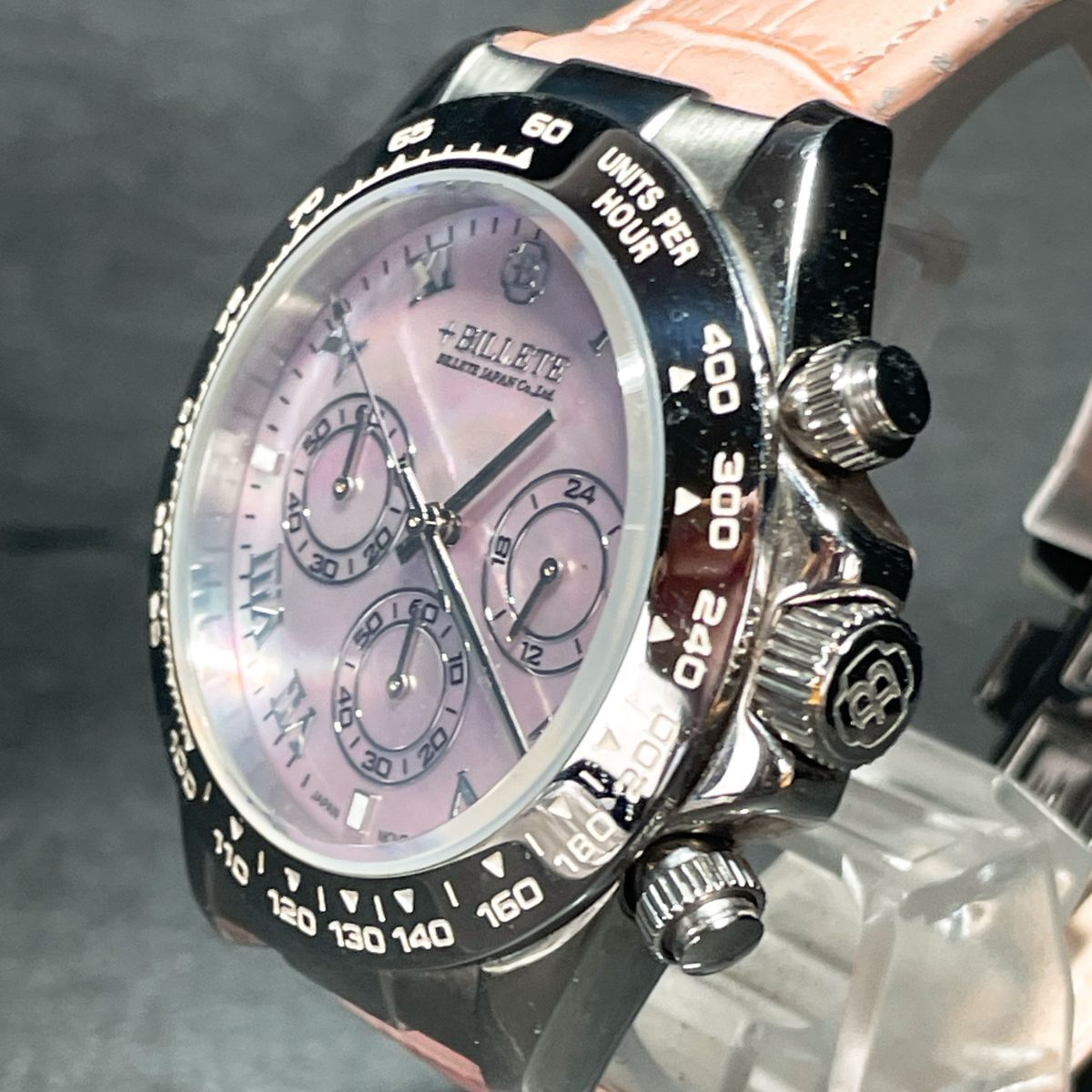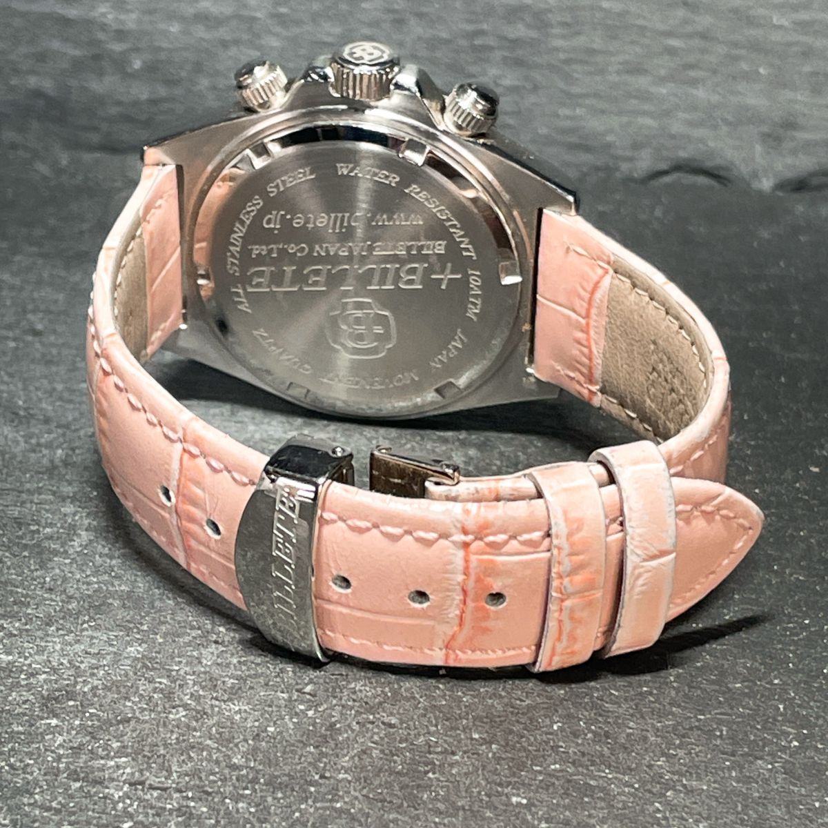 美品 +BILLETE ビレット 腕時計 アナログ クオーツ シェル文字盤 クロノグラフ レザーバンド ピンク 新品電池交換済み 動作確認済み