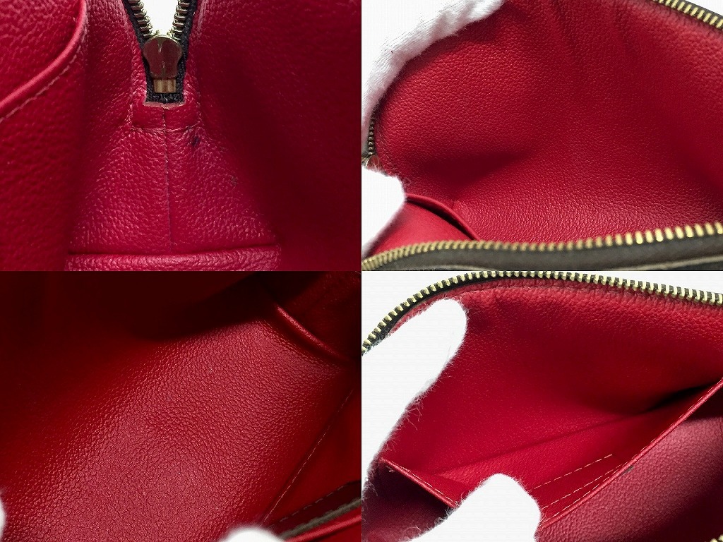 商品説明表地のフロント面上部にヒビ割れがあります。角擦れがあります。内側にシミや傷があります。付属の保存袋にシミ汚れがあります。