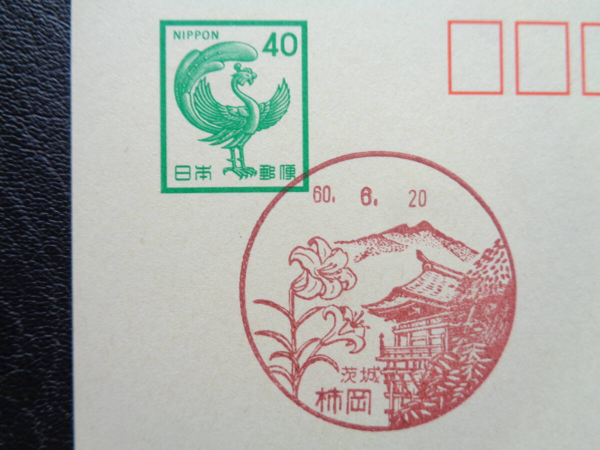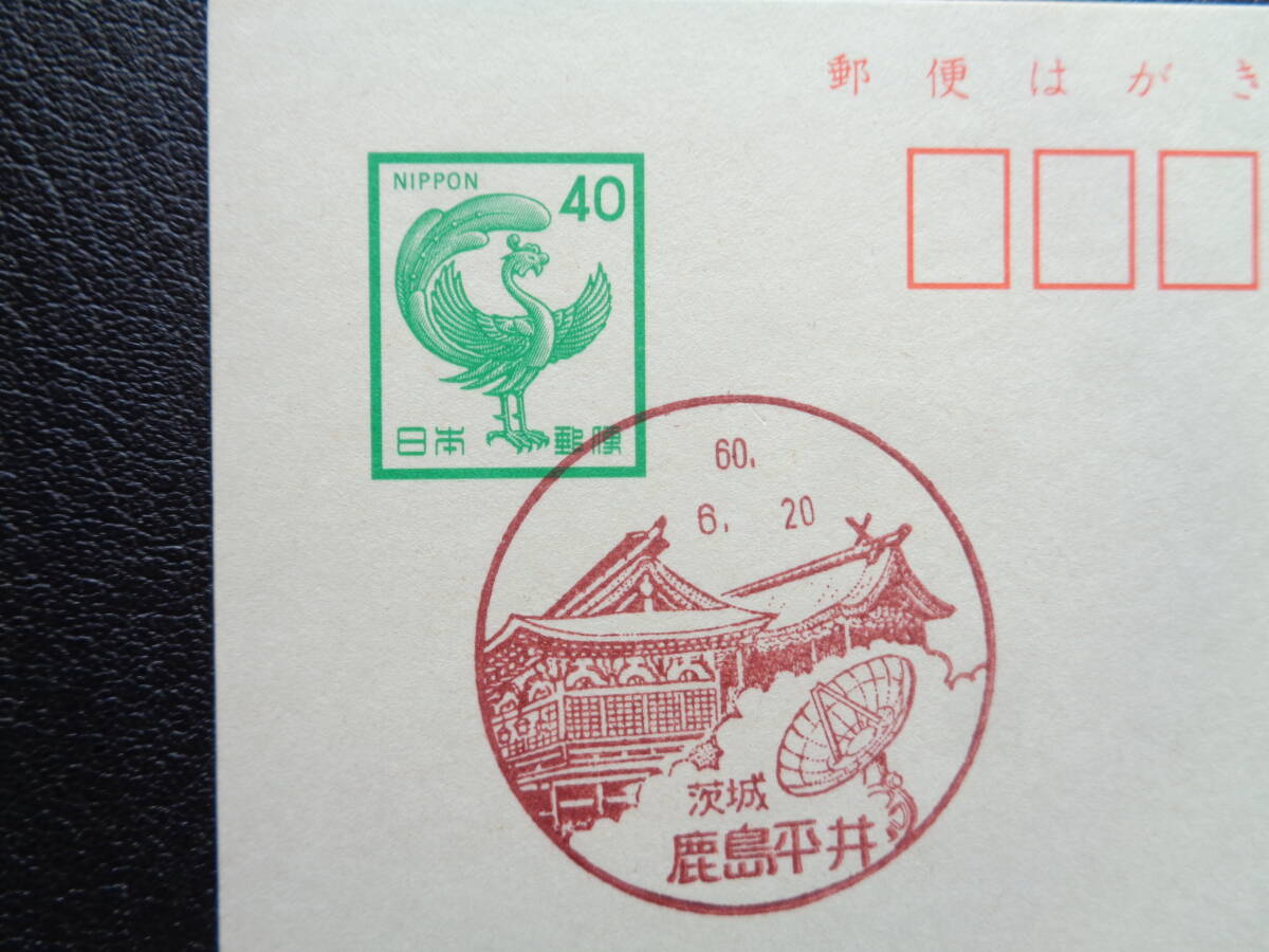 鳳凰はがき    初日印/風景印    茨城県2枚    柿岡/S60.6.20   鹿島平井/S60.6.20