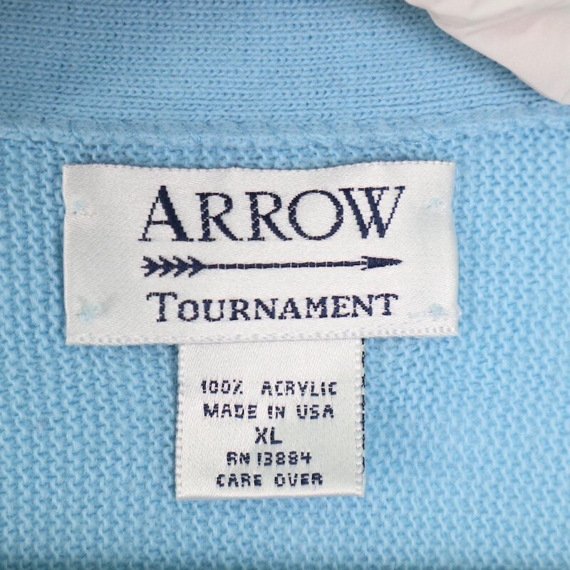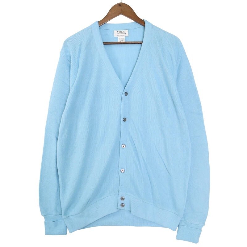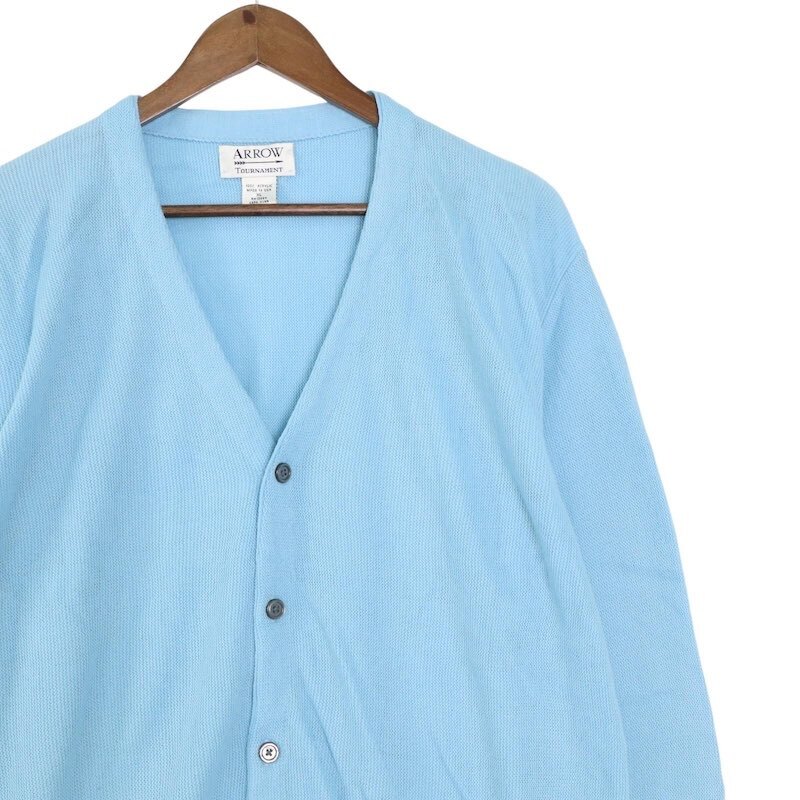 90's ARROW 長袖アクリルカーディガン 大きいサイズ古着 メンズUS-XLサイズ ライトブルー系 sc-0739