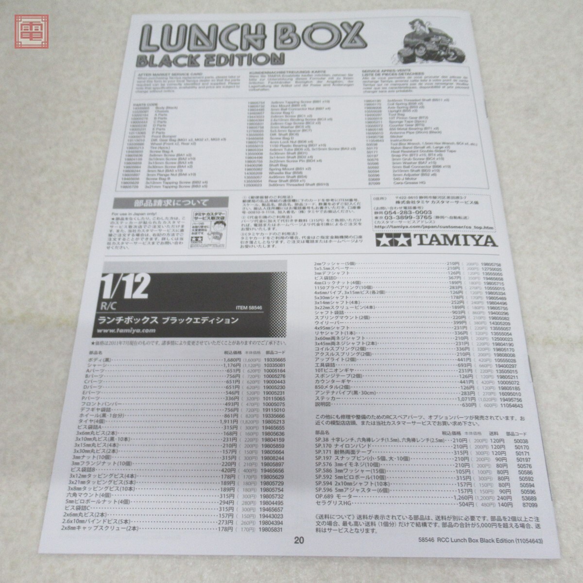 未組立 タミヤ 1/12 ランチボックス ブラックエディション 電動RCオフロードカー 540タイプモーター付き ITEM 58546 ■外箱にスレがあります。 ■内袋の一部が開封されています。 ■説明書にスレがあります。 ■詳細なパーツの確認ができないため、パーツの過不足等の詳細は不明です。 ■写真のものが全てです。付属物の有無や状態については写真からご判断ください。 ■付属物については細かいチェックはしておりませんので、万が一、欠品があったり余計な物が入っていたとしてもご了承ください。 ■商品到着後、当店の保証期間中は、商品及び箱や取説、付属品などを1つでも廃棄や破損をしないようにお願い致します。廃棄や破損をした場合、商品に問題があった場合でも対応や返金などの対処ができなくなります。 ■商品によりますが、発売されてから10年以上経過している中古品である事をご理解頂いた上でご入札をお願い致します。なお、新品や美品、また特記事項がある場合は別途明記します。 | |||